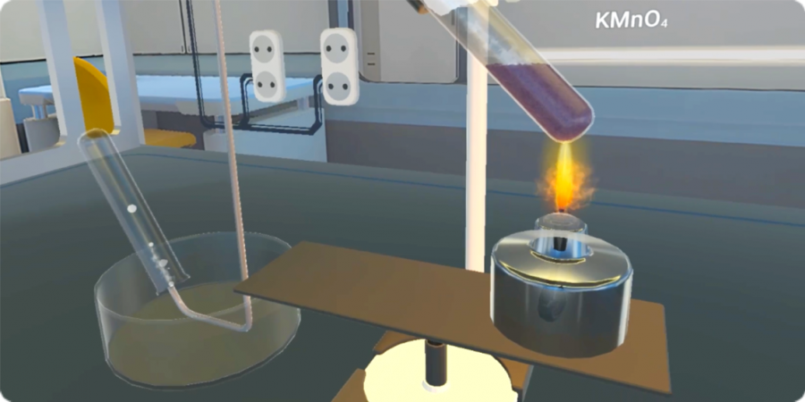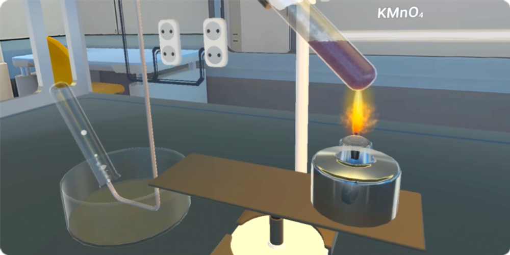 В каждом из сценариев ученик оказывается в виртуальной химической лаборатории для проведения опытов. Ученику необходимо выбрать набор реактивов и сопутствующее оборудование, провести опыт и выполнить проверочное задание составив уравнение реакции на интерактивной доске.