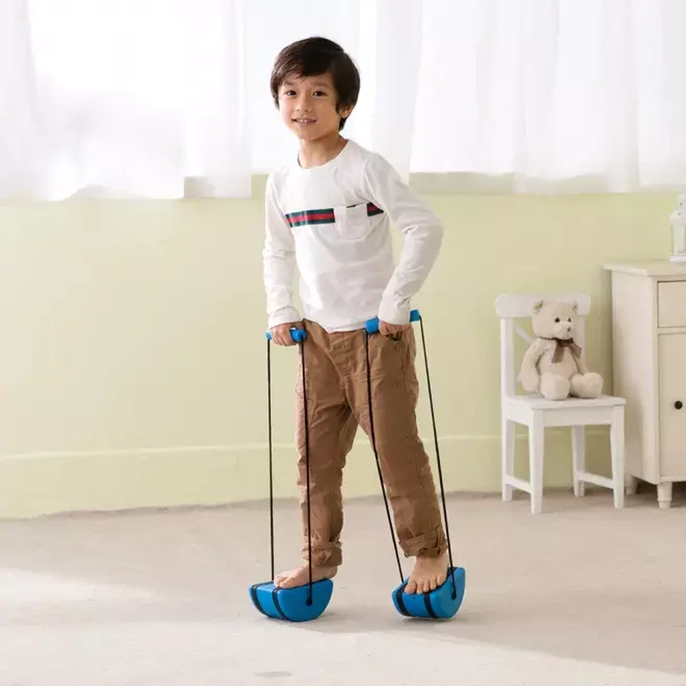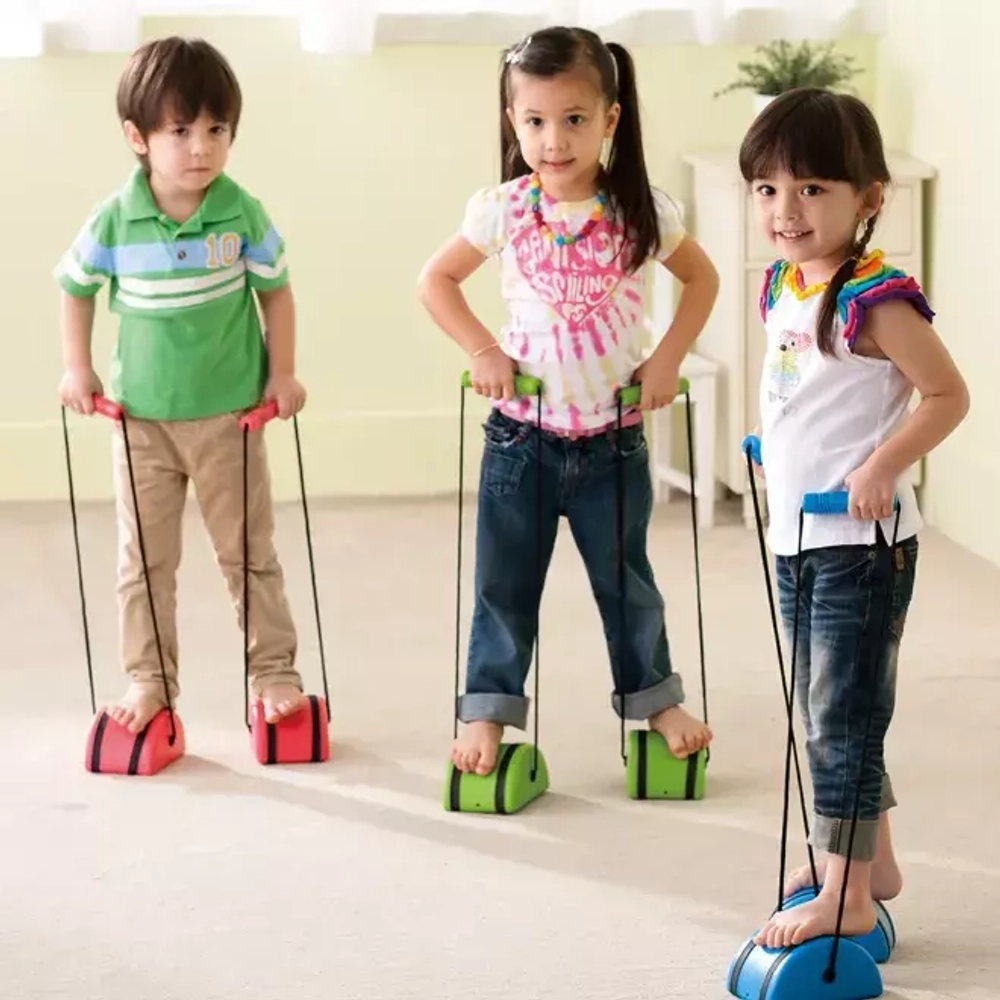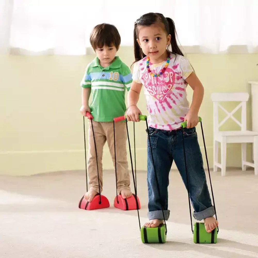 Спортивно-игровой инвентарь набор ходуль от Weplay. В комплекте 3 пары ходуль в виде половинок цилиндра с веревочным креплением с пластмассовой ручкой для корректировки движения ног руками. Предназначены для совершенствования координации движений, балансировки.