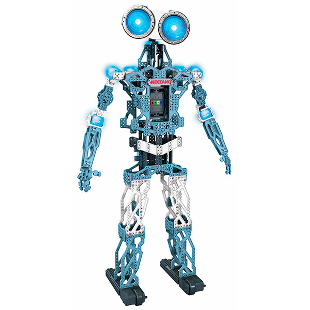 Меканоид - персональный робот, который может стать отличным другом! Инженеры создавали робота с акцентом на простоту использования и программирования. Им можно управлять с помощью специального приложения на смартфоне. Интерактивный робот может распознавать и повторять речь и движения, кроме того, вы легко сможете запрограммировать набор действий, который он воспроизведет в точной последовательности. Вы можете придать роботу индивидуальный дизайн, используя детали конструктора Meccano из других наборов.