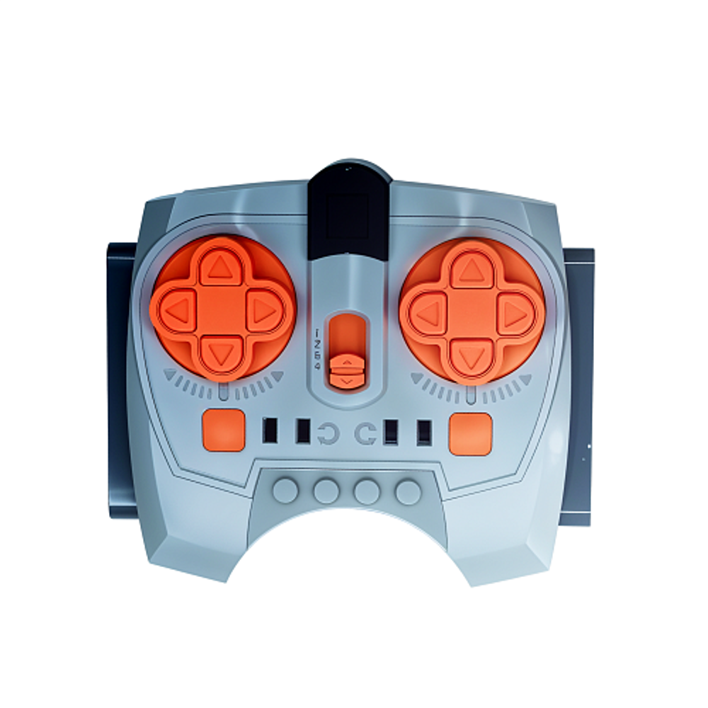 Лего 8879 это инфракрасный пульт управления скоростями для конструкторов Lego Technic. Пульт управления поставляется с 4-х канальным приемником на аккумуляторной батарее. На пульте есть переключатель с 4-мя положениями. Соответственно, в каждом положении он может управлять только определенным выбранным приемником.