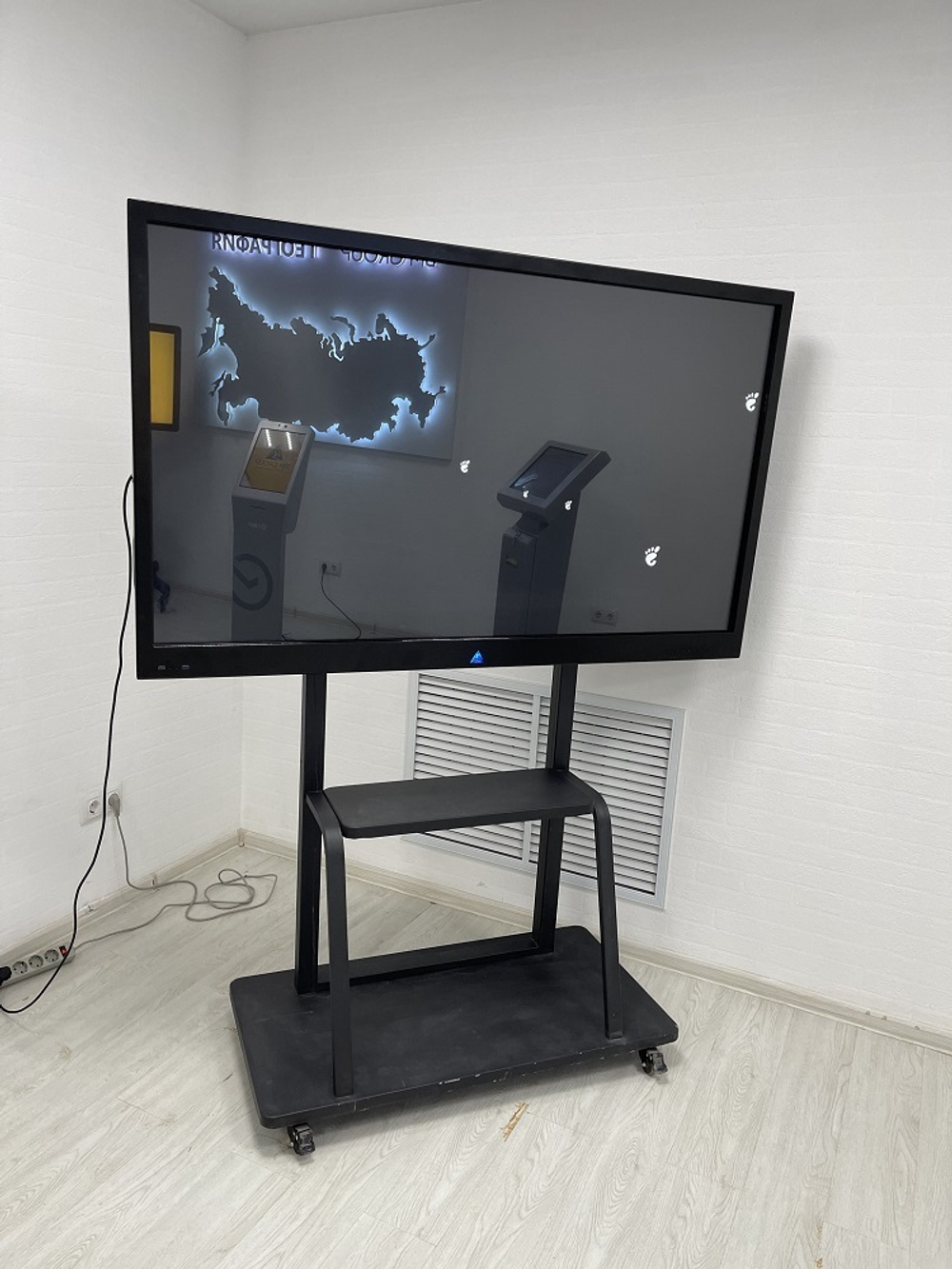 Многофункциональная панель в простом и современном дизайне не занимает много места, крепится на стену или на мобильную стойку на колесиках с фиксаторами. Это прекрасное решение для музеев, выставочных центров, образовательных учреждений (школ, колледжей, вузов и т.д.). Наша оболочка Aura работает с презентациями и всеми офисными приложениями.