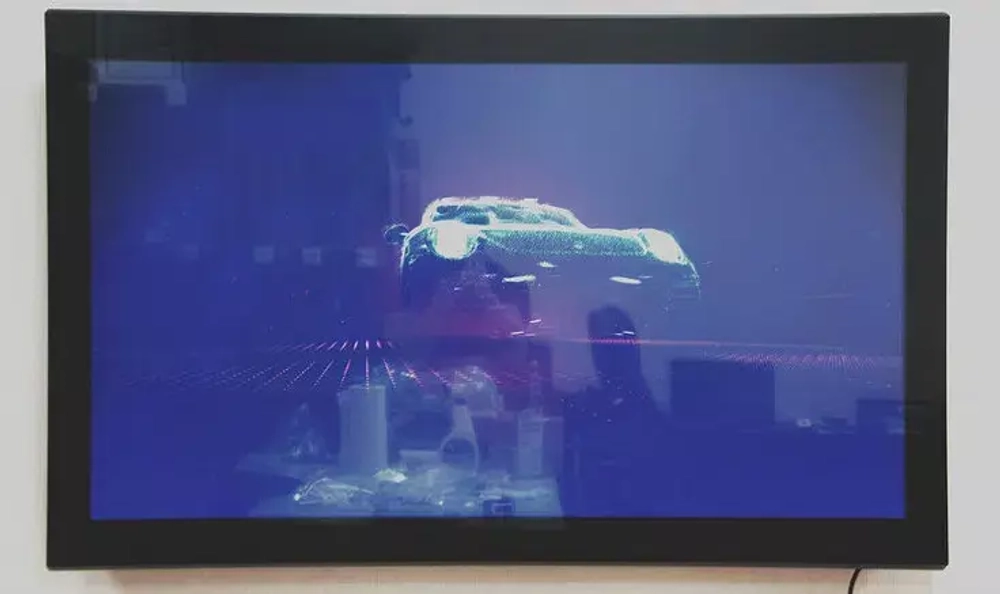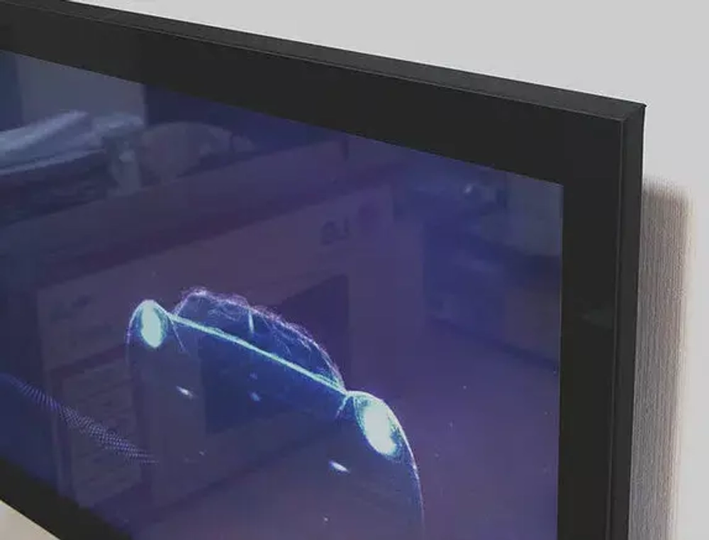 Настенное интерактивное решение с размером экрана 55". Вся лицевая сторона панели представляет собой единую поверхнсть, основанную на плёнке.