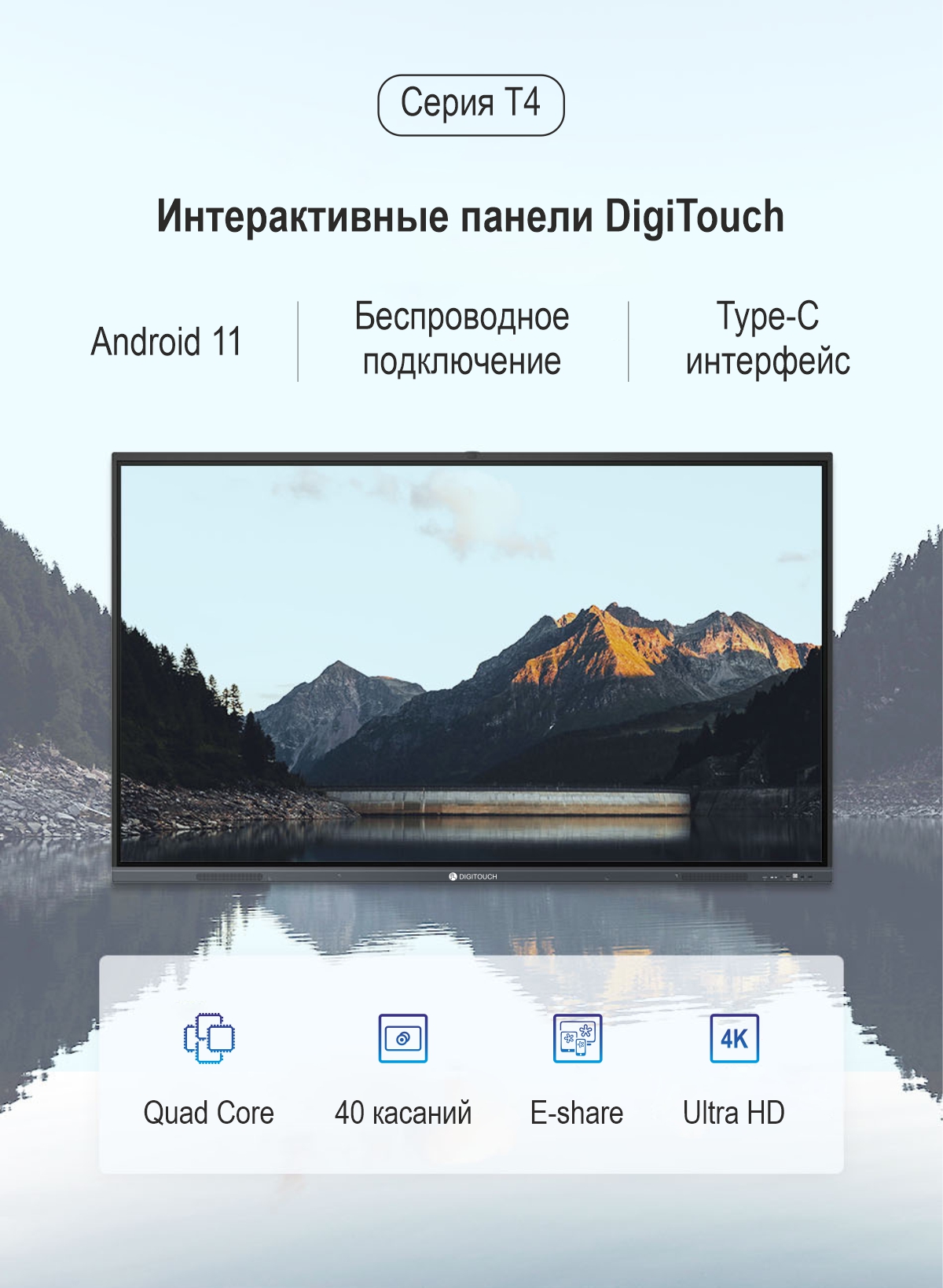 Инфракрасный сенсор интерактивной панели DigiTouch T4 позволяет распознавать до 40 точек касания и использовать стилус, палец и даже ладонь для взаимодействия с дисплеем.