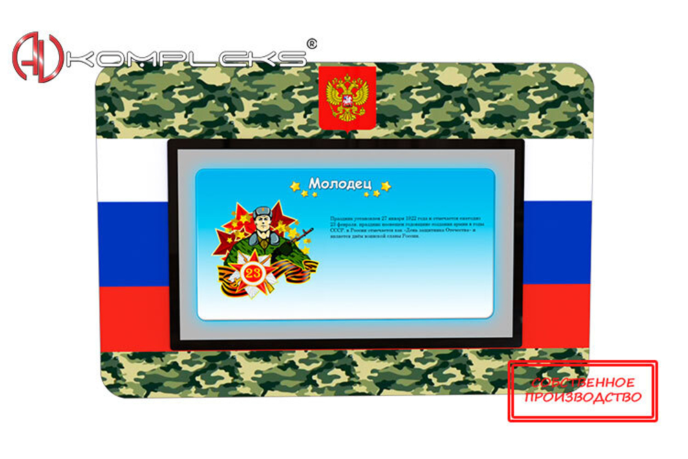 Комплекс обучающих программ, состоящий из не менее 3-х информационных блоков с общим количеством тем 13шт., общее количество заданий 178 заданий, направленных на изучение НВП, безопасности государства, медицинской помощи. Тест на патриотическую тематику из 10 вопросов на патриотическую тему. Каждый вопрос имеет 2 вариантов ответа. Тест позволяет воспроизведение Гимна РФ. В тесте отражены основные даты государственных праздников РФ и их краткое описание.