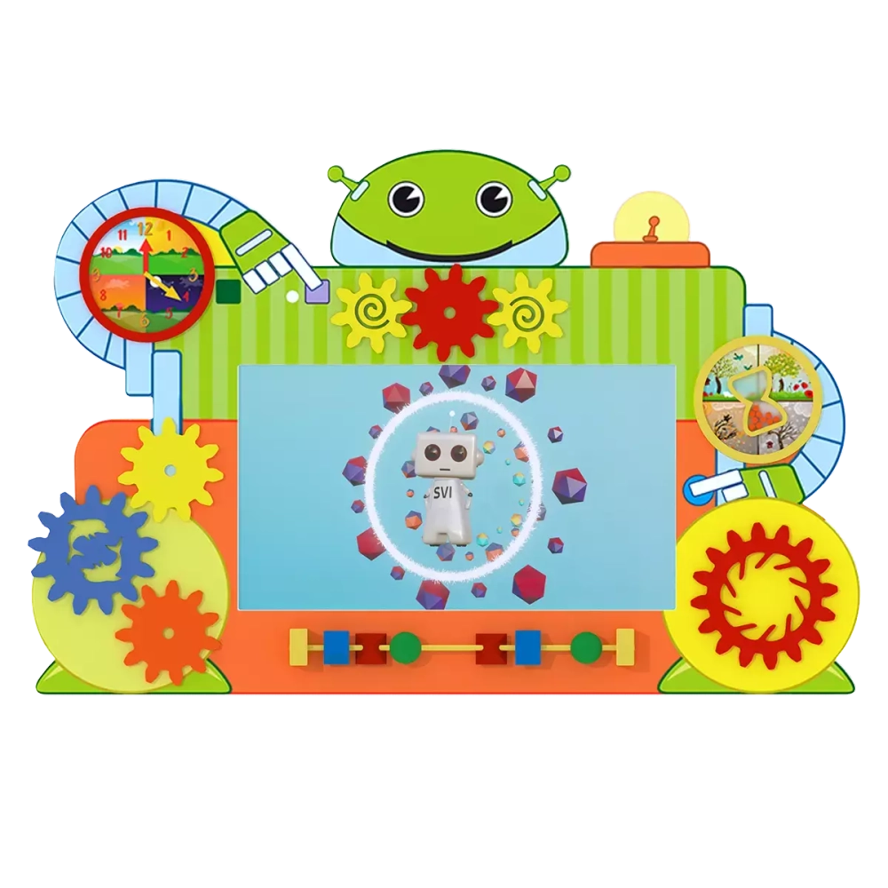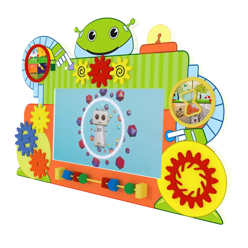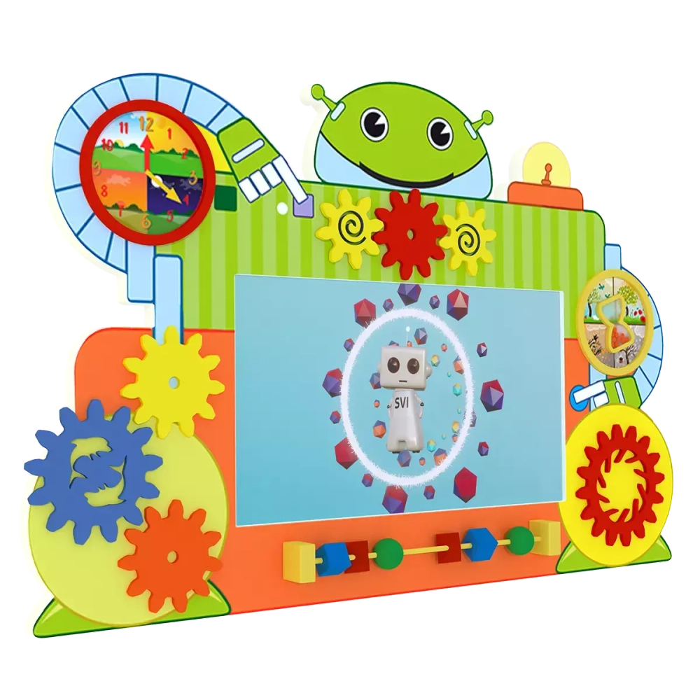 Яркий настенный модуль с оригинальным дизайном. Занятия с данным комплексом способствуют развитию памяти, мышления, логики, внимательности, усидчивости, моторики рук. В комплект входят задания по азбуке и арифметике, сказки, раскраски, пазлы (156 игр и приложений). Кроме того детям будут интересны крутящиеся элементы, счеты, сортировка геометрических фигур, часы, песочные часы и др. Может быть задействован на занятиях с детьми с ОВЗ.