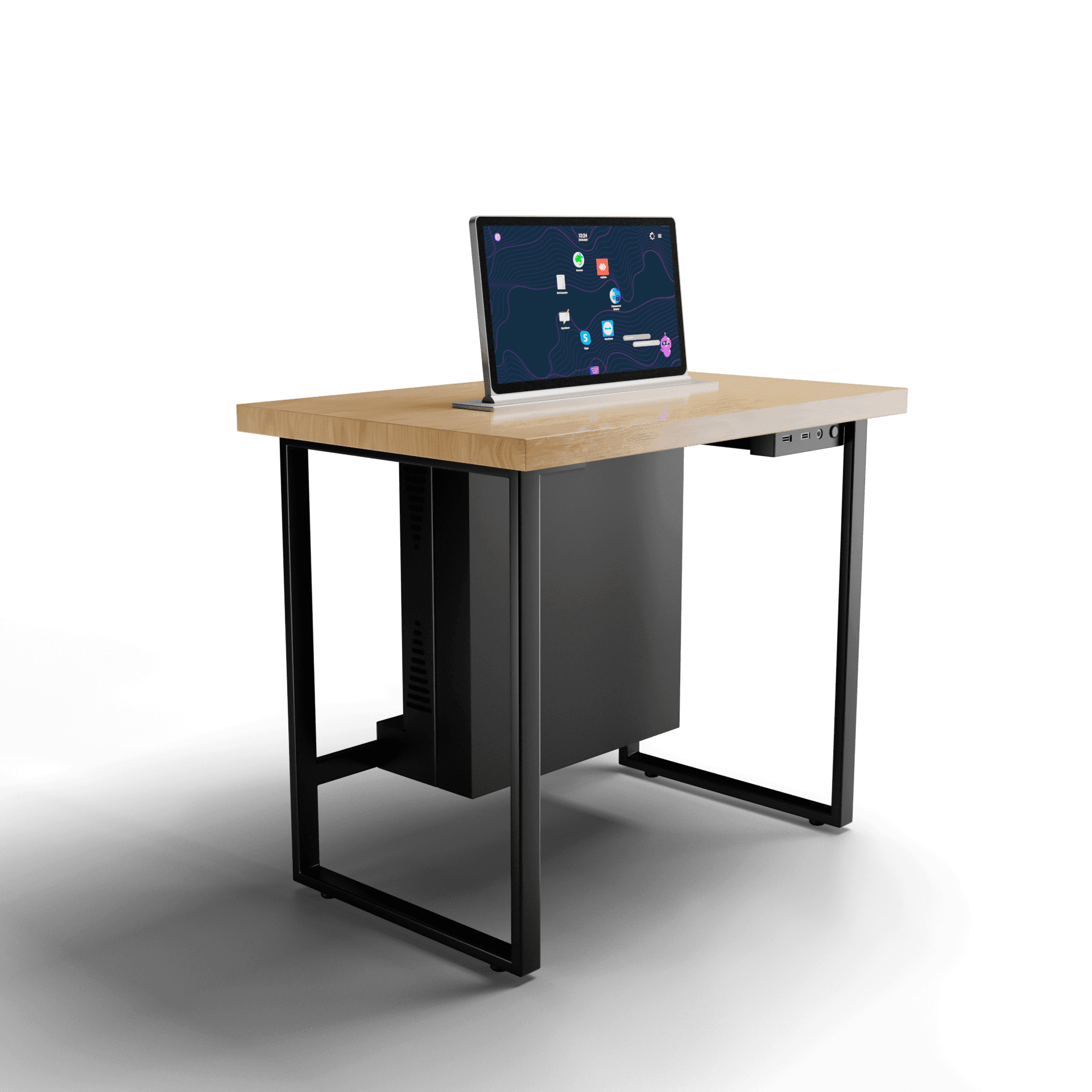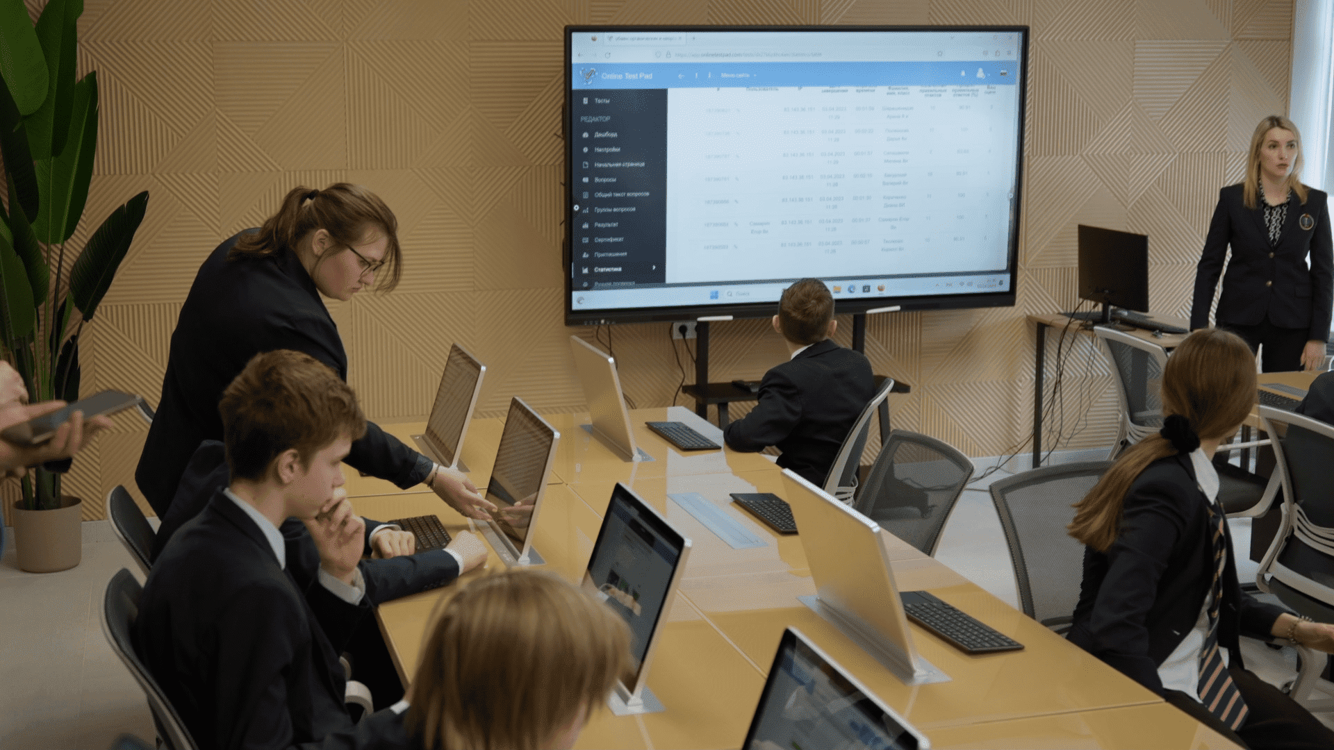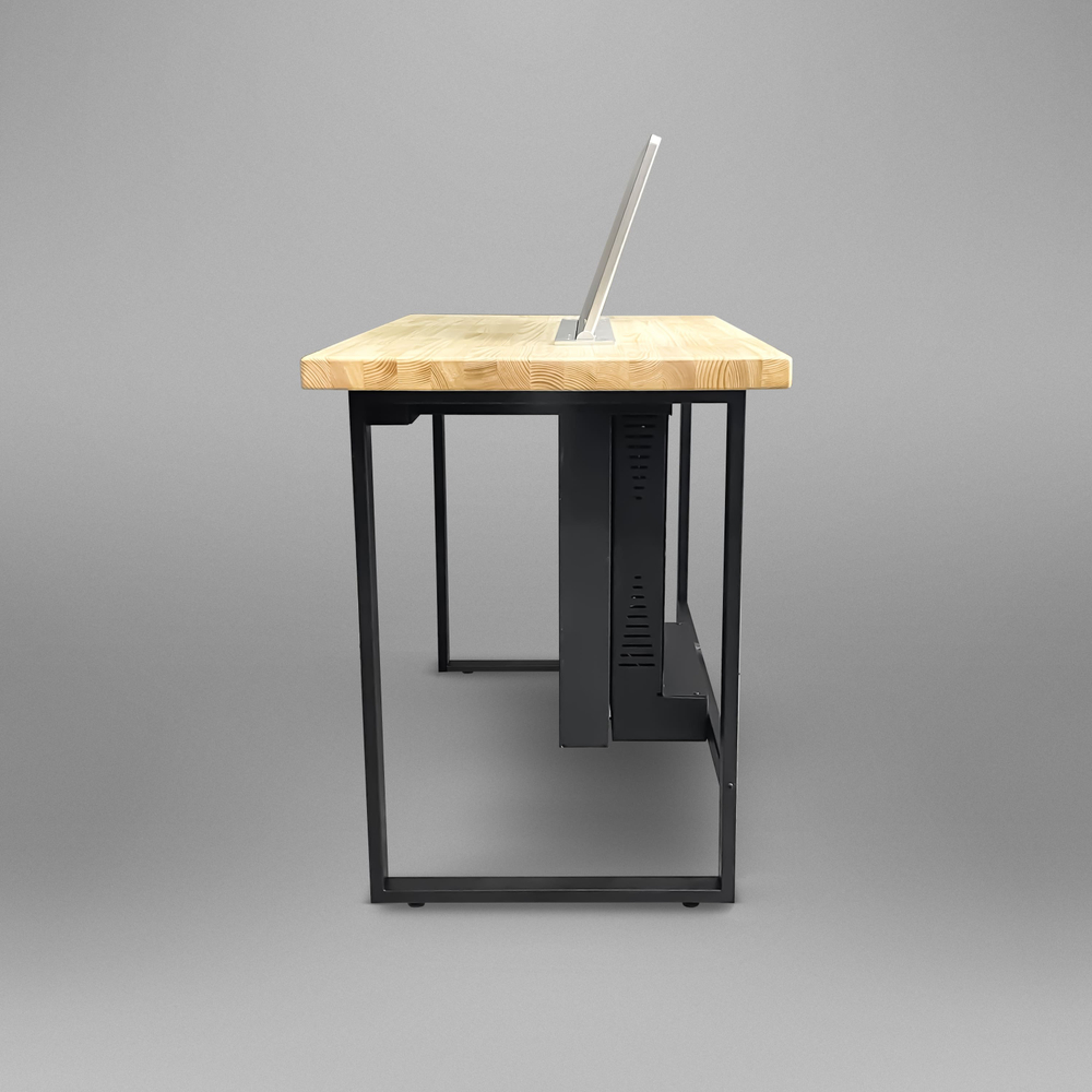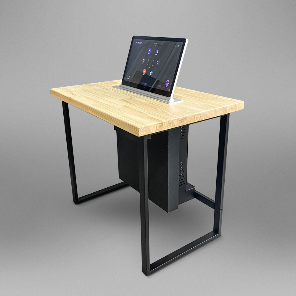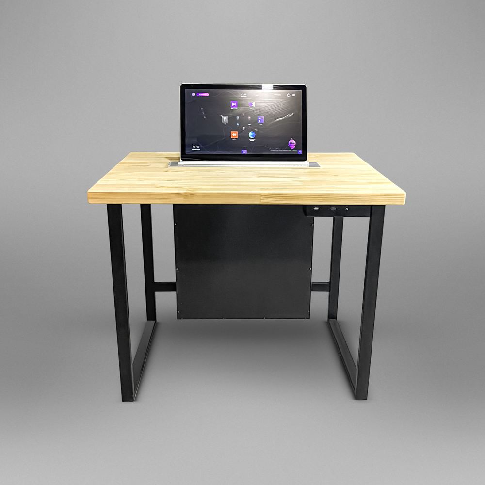 Автоматизированные рабочие места с выдвижным дисплеем используют в классе онлайн-тестирования. В данном проекте предусмотрены компьютеры с процессором intel, выдвижные сенсорные дисплеи, а также беспроводной комплект мышки с клавиатурой. Все места объединены в единую систему и имеют защищенный интерфейс со входом по логину и паролю. Такой класс онлайн-тестирования может быть интегрирован в любое образовательное учреждение.