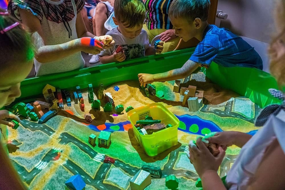 Интерактивная песочница Playstand "Полянка" - это развивающий комплекс, который объединяет в себе возможности интерактивной песочницы и сенсорного стола. Технология дополненной реальности превращает обычный песок в земную поверхность с озёрами и горами, вулканами и долинами. Дополнительные панели позволяют проводить занятия в режиме сенсорного стола.