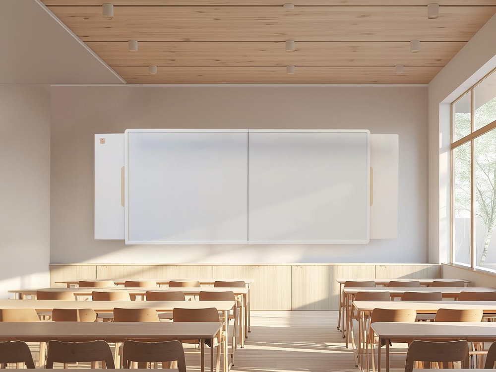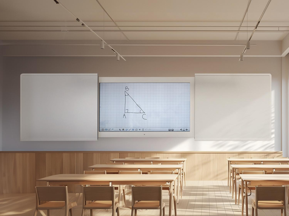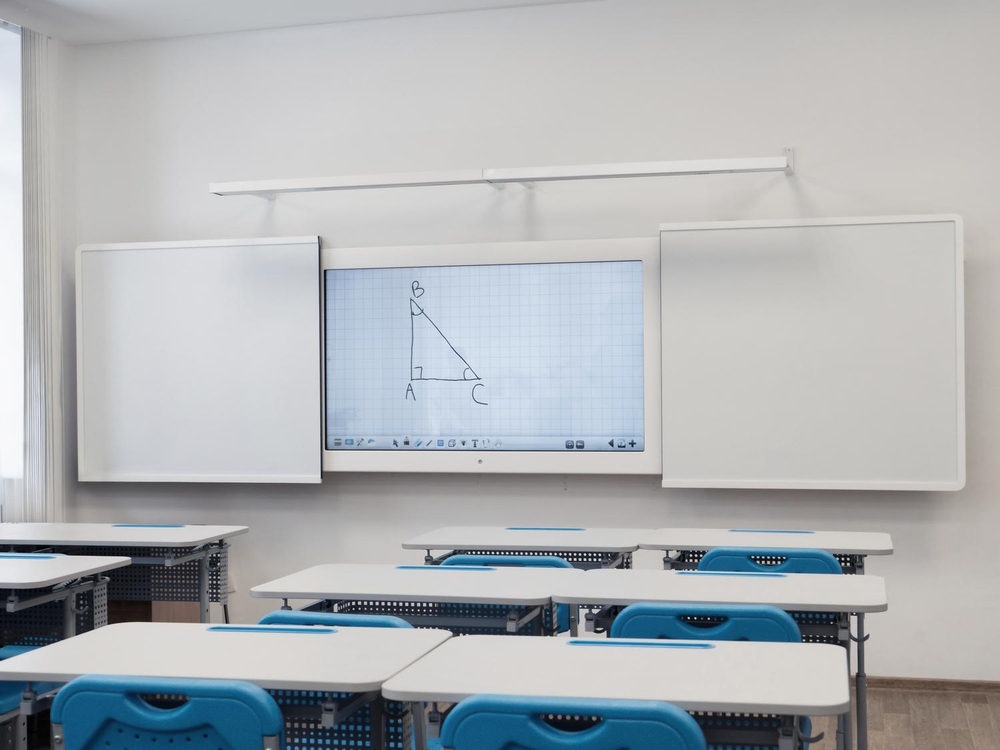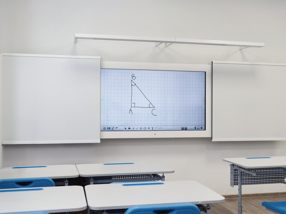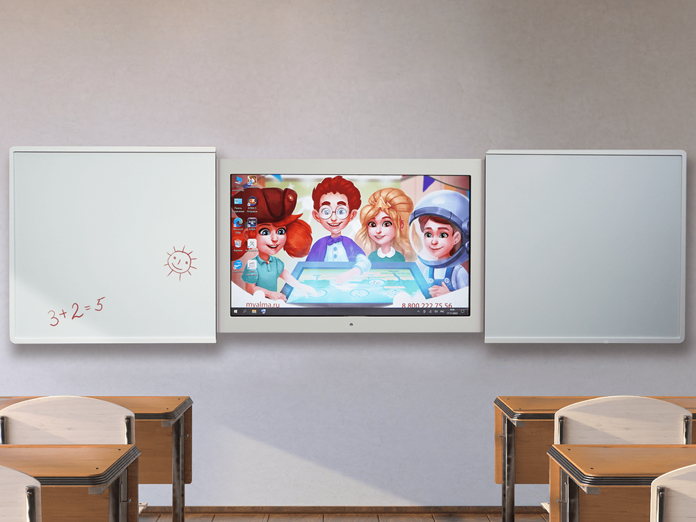 Современная школьная доска «Фибоначчи», сочетающая пишущую магнитно-маркерную поверхность и интерактивный экран со встроенным компьютером. Раздвижная конструкция доски «Фибоначчи» позволяет трансформировать рабочую зону по желанию преподавателя, и совмещать традиционные занятия от руки с инновационными инструментами в образовании. Подходит для оснащения школ, учреждений культуры, детских кружков, развивающих и коррекционных центров для детей.