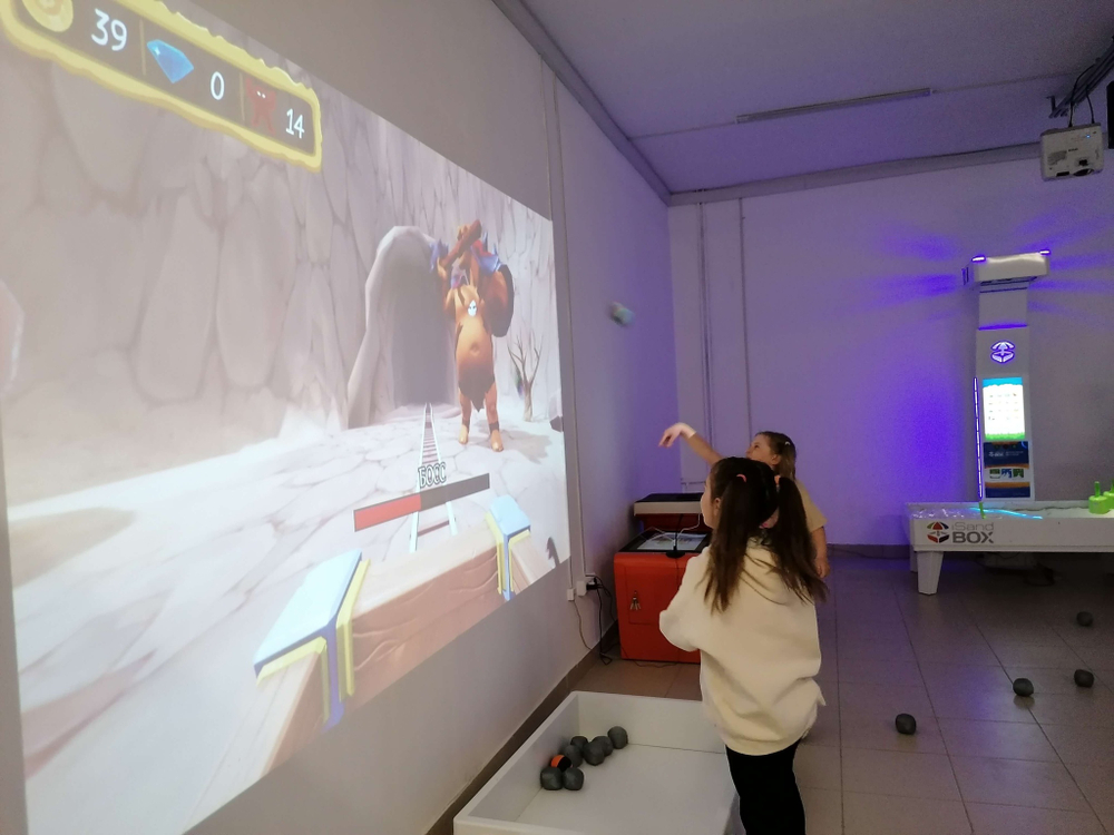 Комплекс разработан для вовлечения детей дошкольного и младшего школьного возраста в физическую активность. “Попадалкин” превращает стену в интерактивное пространство, в котором игроки бросают мячи в виртуальные объекты для достижения игровых целей. Комплекс помогает развивать ловкость и меткость. Некоторые из режимов подразумевают соревновательный аспект, другие – активное командное взаимодействие.10 игровых сюжетов, одновременно могут играть до 10 игроков, игровое пространство (проекция) 1,7 х 3 м.