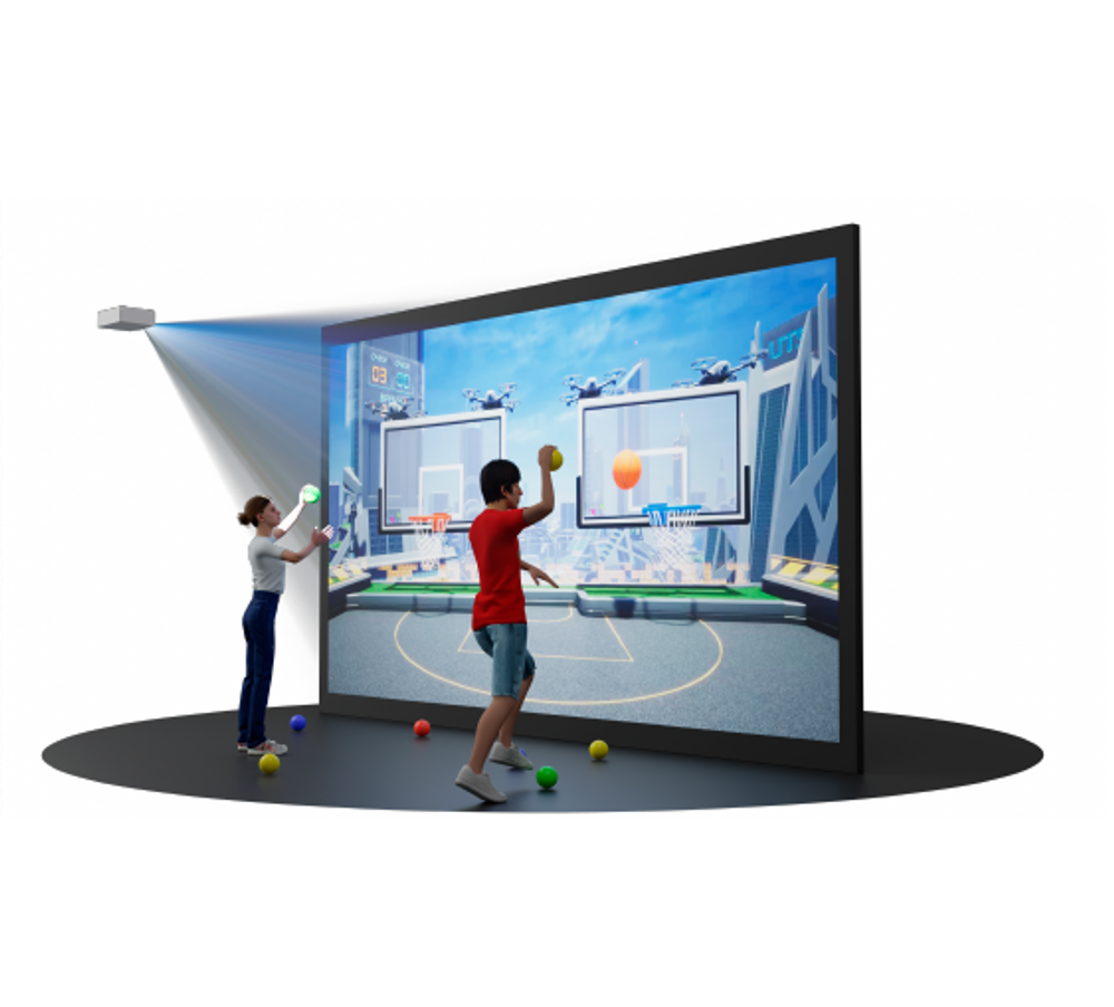 Интерактивный комплекс “Попадалкин” состоит из проектора, компьютера и датчиков. Работая вместе, эти элементы создают на стене «живые» изображения. Яркие, красочные картинки приковывают взгляд и погружают детей в игровую среду. И самое интересное - с изображениями можно взаимодействовать! Управляйте картинкой, прикасаясь к стене. Для этого используйте текстильные мячики.