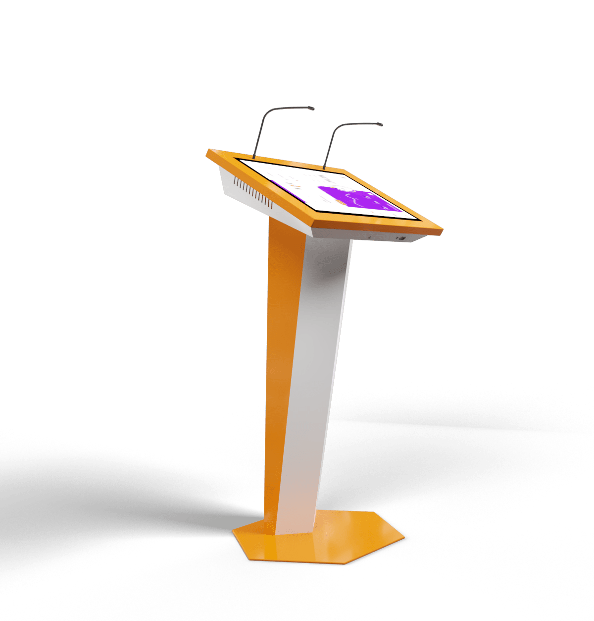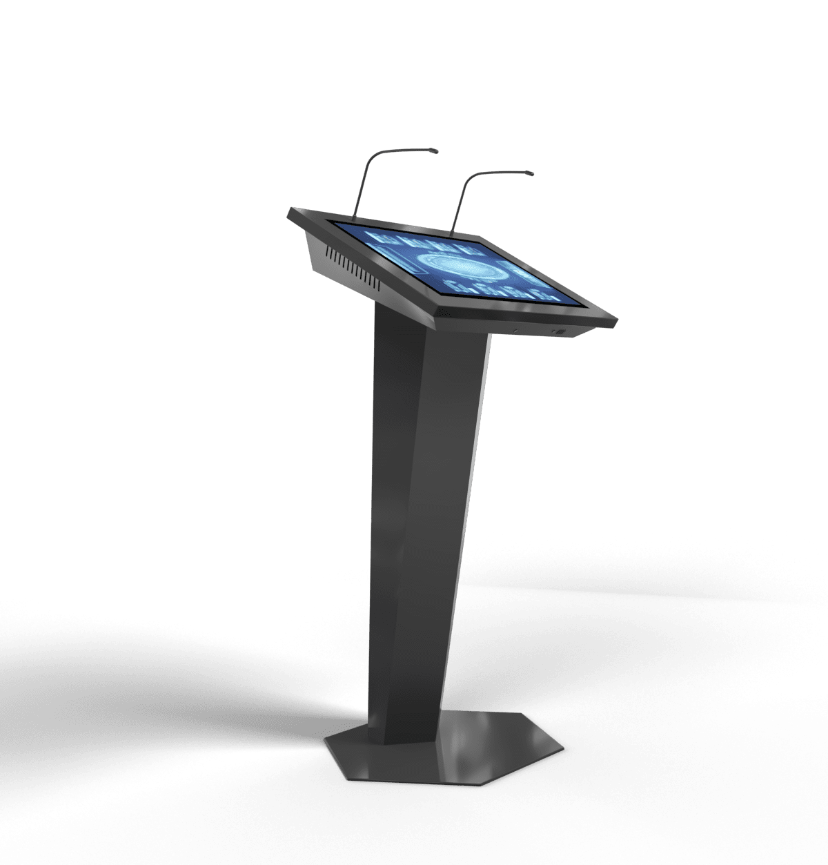 Футуристический, запоминающийся дизайн и высокотехнологичная начинка – вот главные особенности этой интерактивной трибуны. Мы предусмотрели все, что нужно для выступлений – микрофоны, усилитель звука, необходимые разъемы для подключения оборудования, большой сенсорный дисплей, возможность выводить информацию на большой экран.