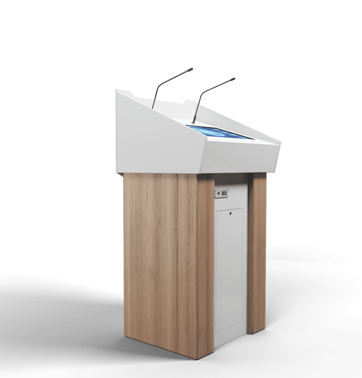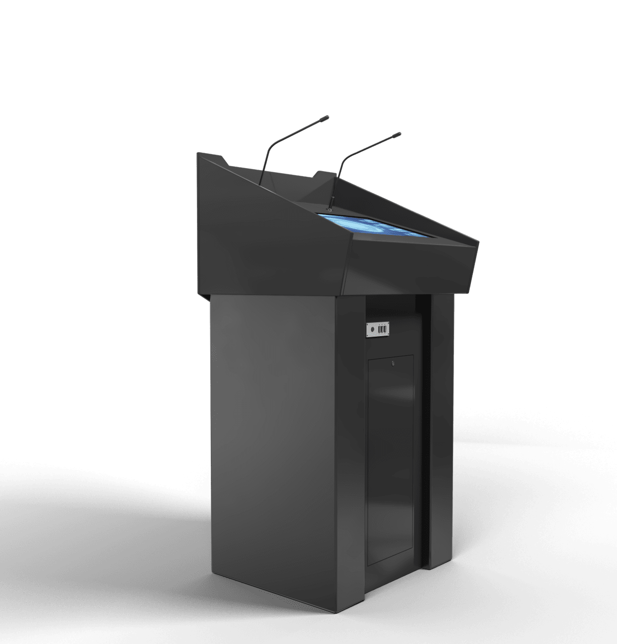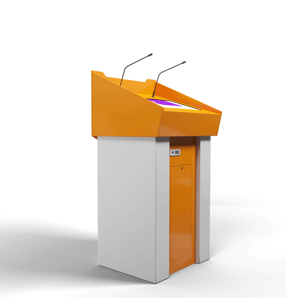Отличное решение для конференц-залов, лекториев и аудиторий, а также для любых пространств, где предполагаются публичные выступления. Современный, минималистичный и стильный дизайн позволит трибуне вписаться в любой интерьер, а ее мультимедийные возможности обеспечиваются дисплеем с технологией мультитач, микрофоном и оболочкой Aura, которая поддерживает офисные приложения и программы для презентаций.