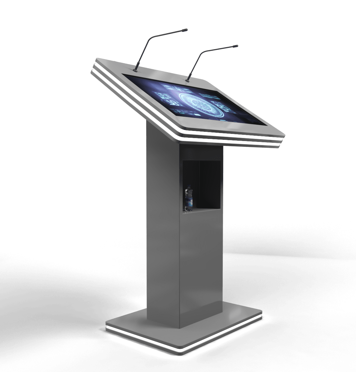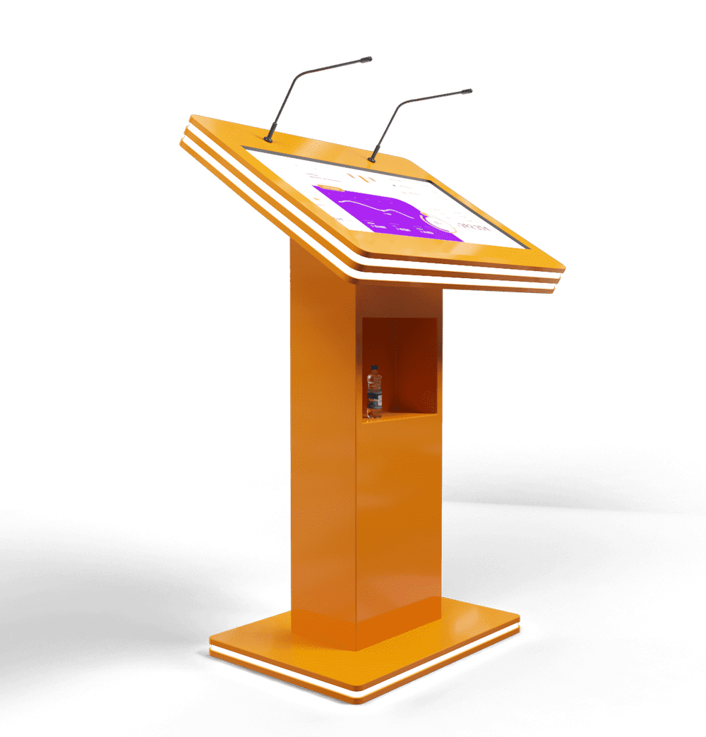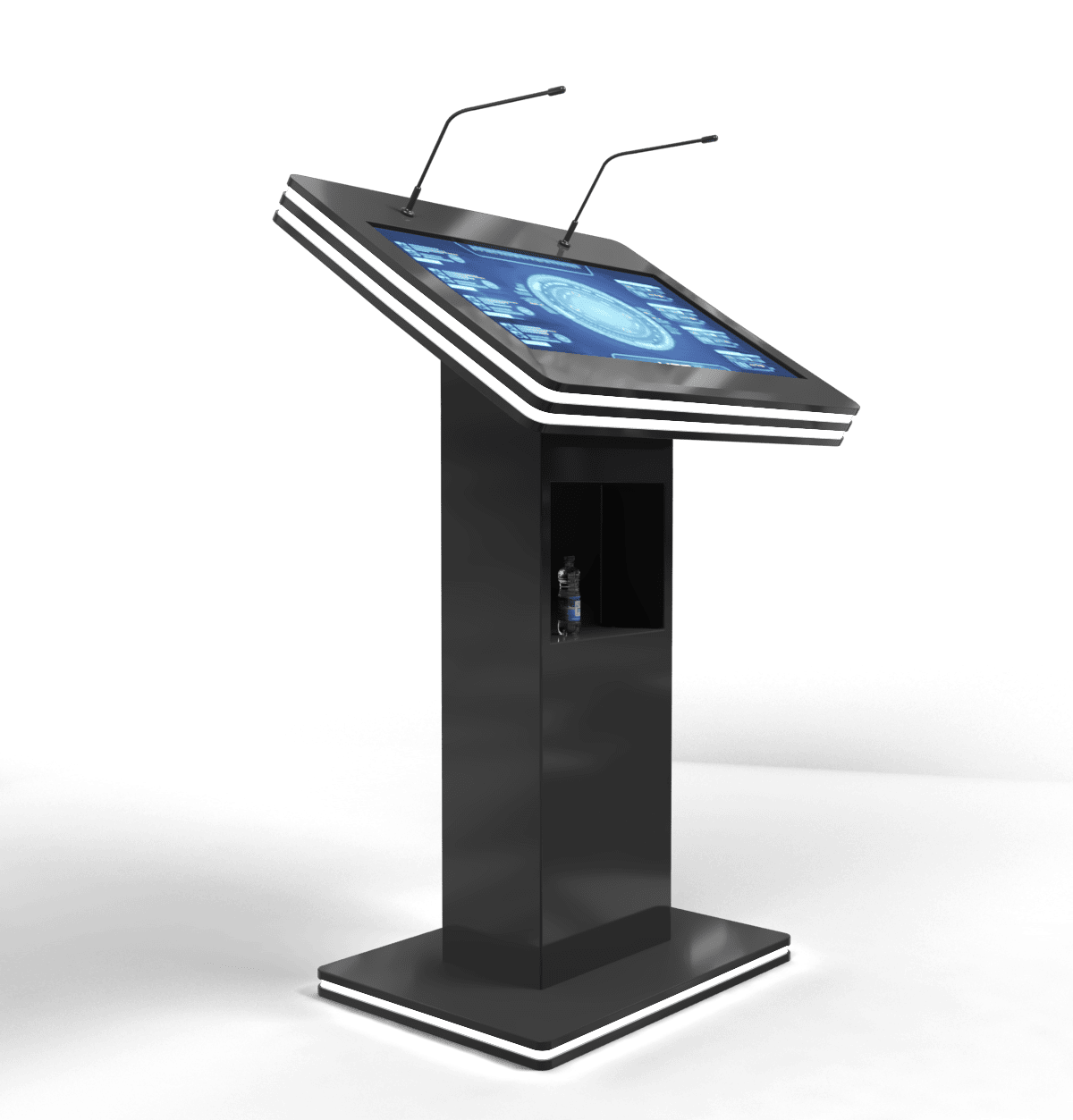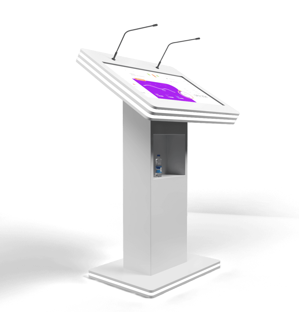 Одна из самых стильных моделей в нашей линейке интерактивных трибун украсит любой фестиваль, конференцию или бизнес-форум. Мы встроили в трибуну большой яркий дисплей с технологией мультитач, микрофоны, разъемы для дополнительной аппаратуры. WHITE STRIPES – отличный помощник для спикеров или лекторов в вузах.