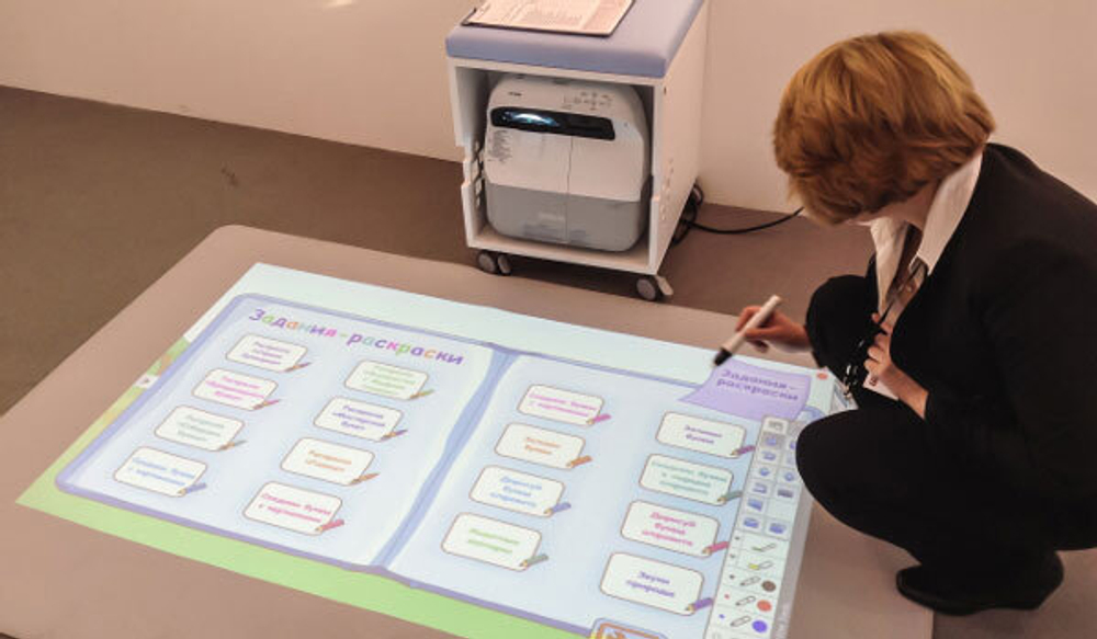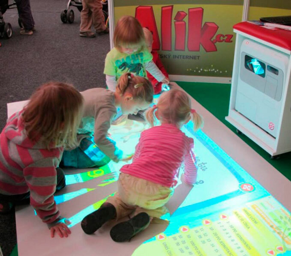 С её помощью даже совсем маленькие дети могут участвовать в компьютерных играх, раскрасках, складывать пазлы и принимать участие в других обучающих программах, даже когда они стоят, ползают на коленях или лежат прямо на проекционной поверхности.