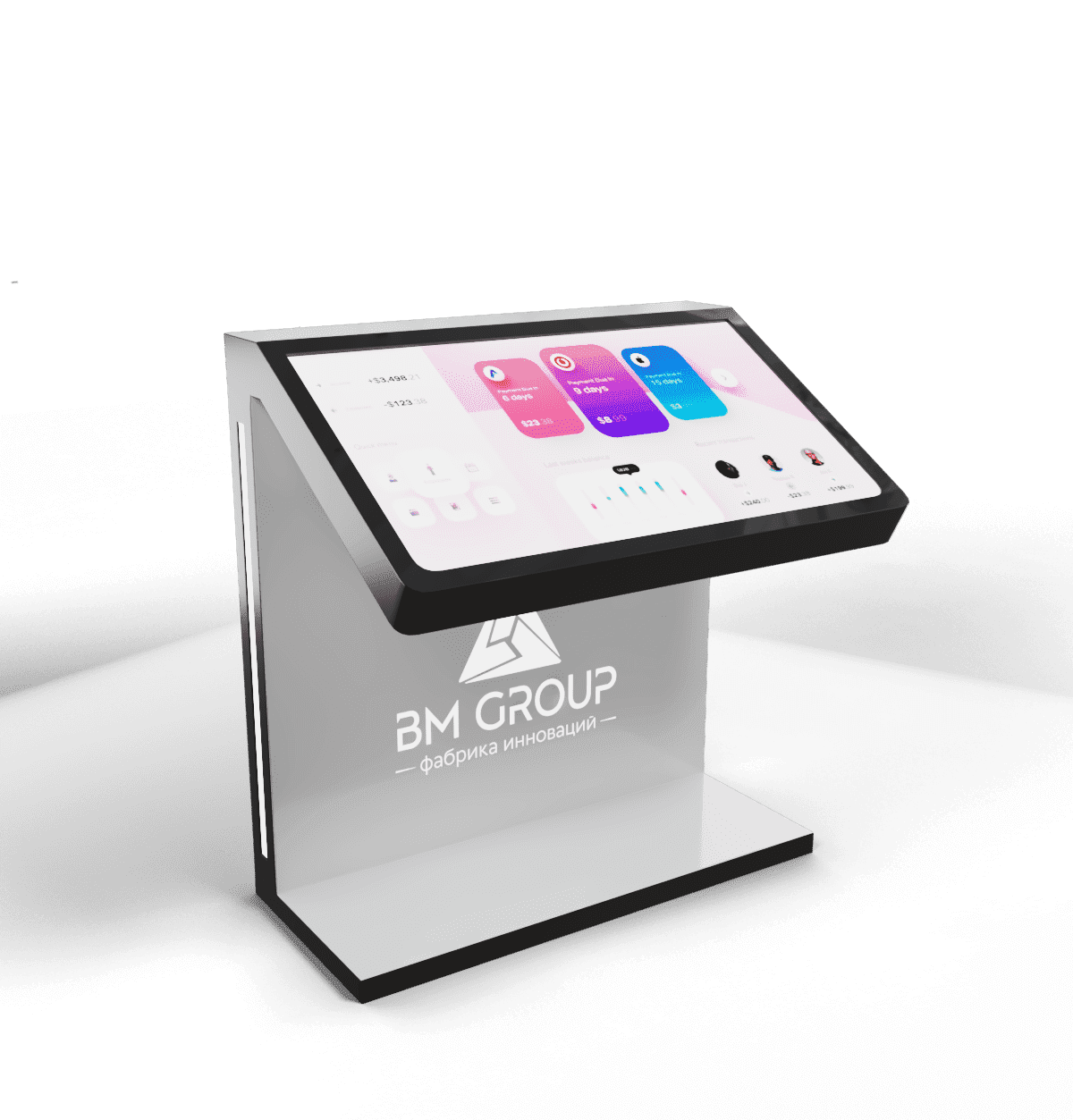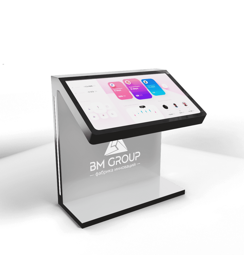 Большой интерактивный стол на устойчивой надежной опоре - отличный инструмент для пространств с высокой проходимостью. На крупном дисплее можно демонстрировать информацию о компании, о товарах или услугах, мероприятиях, акциях и т.д. Работать за столом удобно благодаря эргономичному углу наклона экрана.