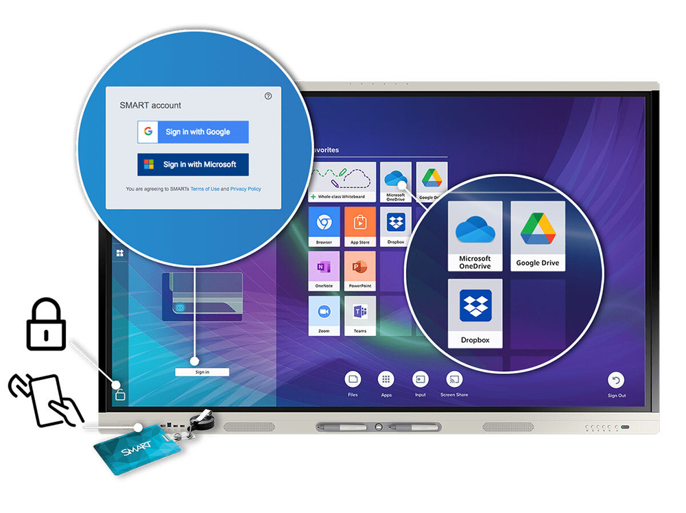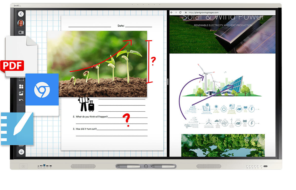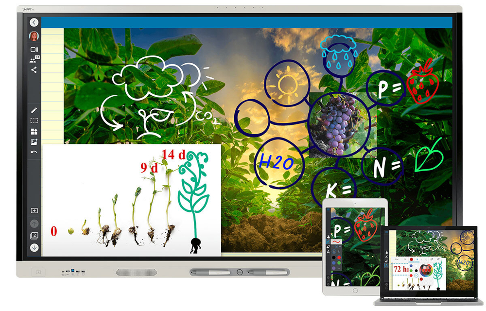 Электронные чернила SMART ink позволяют оставлять записи и пометки на открытых во встроенном браузере, сайтах, файлах PDF, а также Microsoft Office, сохраняя их в виде картинки или документа.