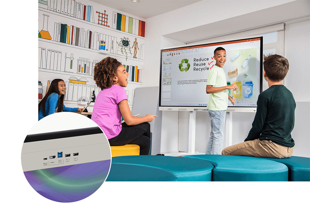 Подключайте компьютеры и другие мультимедиа-устройства через многочисленные порты HDMI, VGA, USB. Фронтально расположенные порты упрощают подключение устройств.