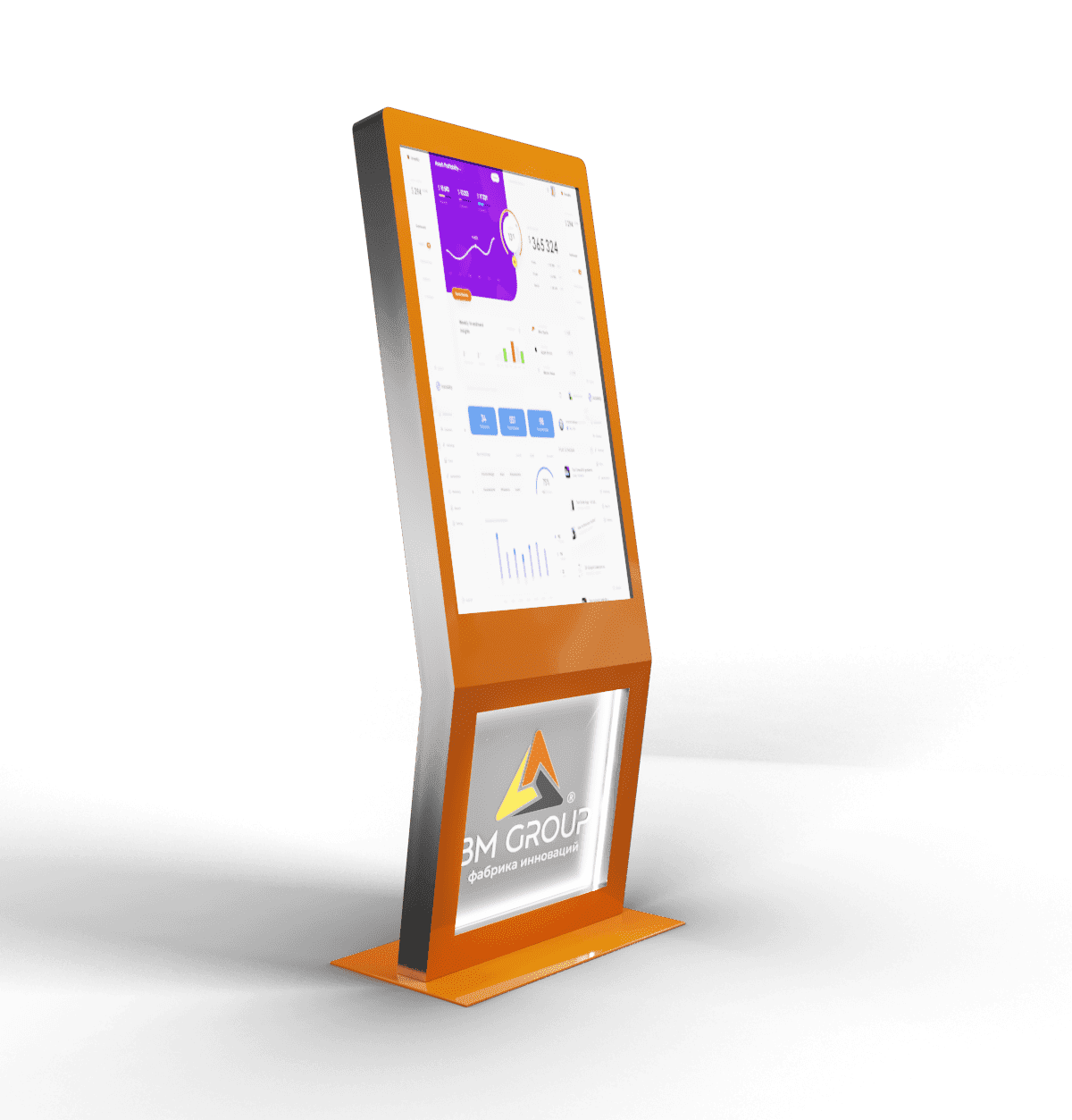 Genesis – это универсальный программно-аппаратный комплекс для представления большого объема информации в красивой, удобной и понятной форме. Дисплей Full HD поддерживает до 10 касаний одновременно, а в нижней части корпуса есть ниша с подсветкой и размещения вашего логотипа.