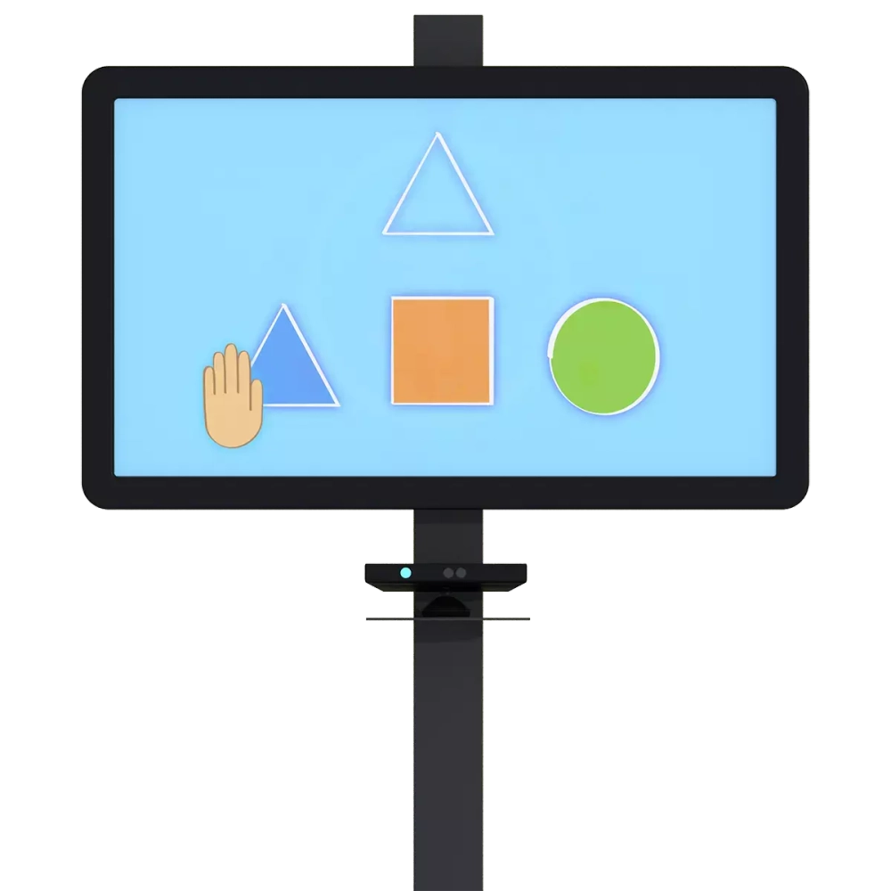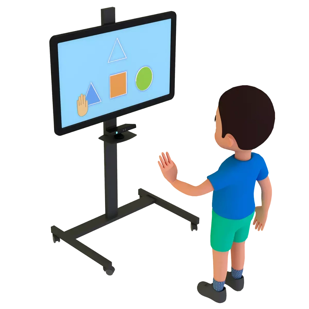 Дети при помощи датчика, движениями рук и тела управляют интерфейсом на расстоянии от экрана. Встроенная программа обрабатывает полученную информацию, и отображает действия на экране. Детский комплекс создан с использованием современных технологий. Теперь детям не нужно неподвижно сидеть у мониторов, ведь обучаться они могут, занимаясь любимым делом – игрой.