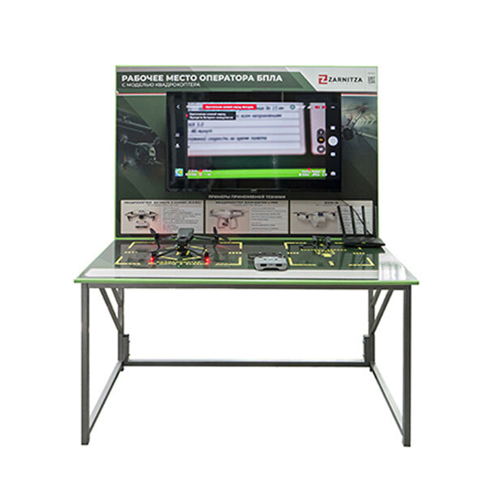 Интерактивный комплекс "Рабочее место оператора БПЛА с моделью квадрокоптера" предназначен для безопасного освоения навыков реального пилотирования мультикоптеров, а также повышения квалификации операторов дронов без разрушения беспилотного аппарата в процессе обучения.