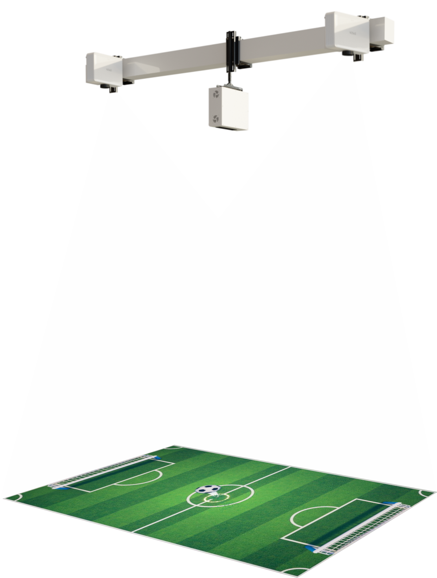 2 проектора усиливают яркость и убирают тени. Проекторы и датчик с компьютером крепятся отдельно с помощью кронштейна к потолку. Планшет для управления режимами и настройками.