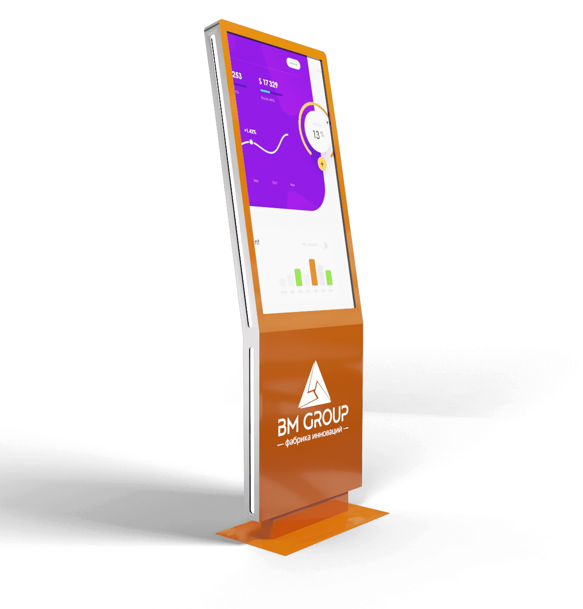 Наши инженеры разработали универсальное решение для любых пространств – интерактивный киоск с большим сенсорным экраном, который поддерживает до 10 одновременных касаний. Стильный и прочный аппарат поможет красиво и доступно представить информацию о товарах и услугах, мероприятиях, расписании специалистов, расположении корпусов или помещений.