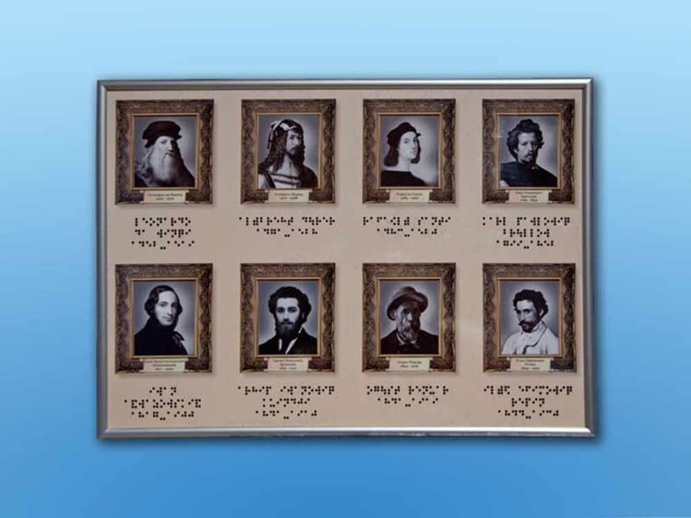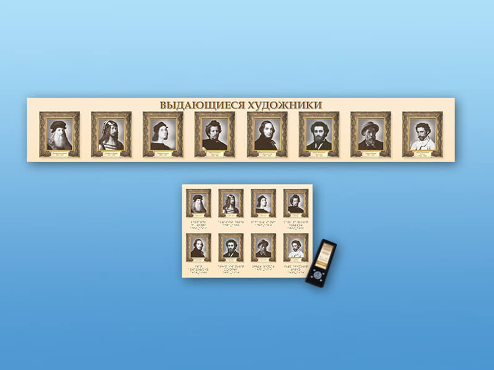 Интерактивный стенд Выдающиеся художники адаптивный, с сенсорным пультом управления и планшетом со шрифтом Брайля (изобразительное искусство)