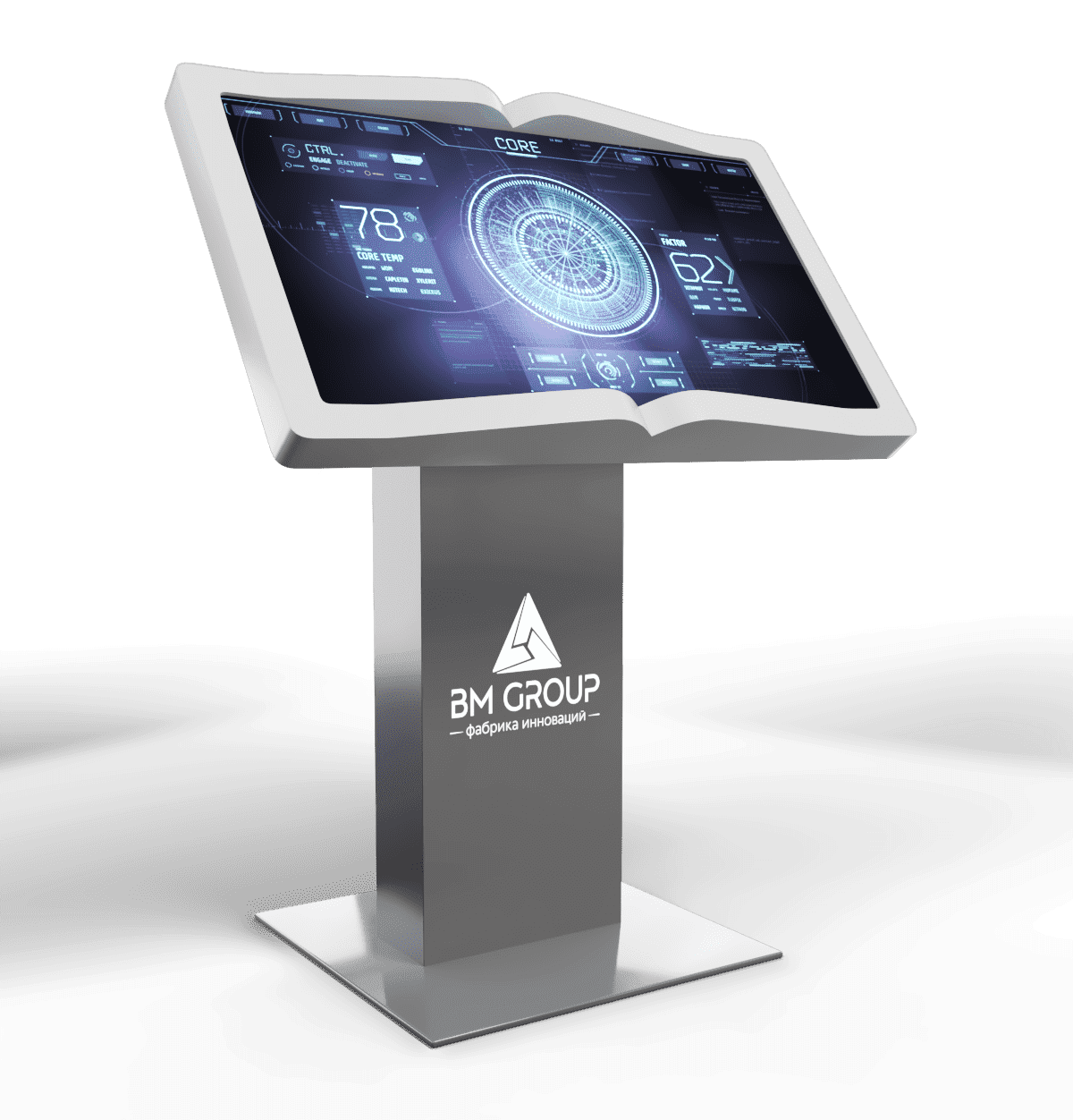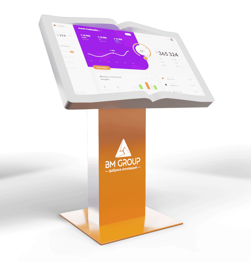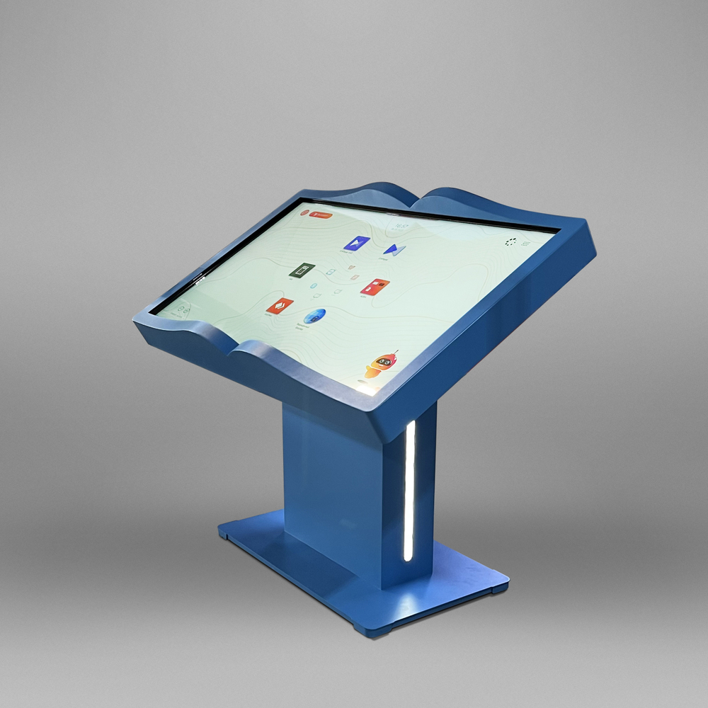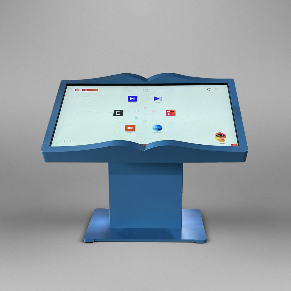 Классика в необычном прочтении - столешница сенсорного стола BM Book выполнена в виде раскрытой книги. Листайте страницы в защищенном браузере, который встроен в нашу оболочку Aura, читайте документы, просматривайте презентации с комфортом – благодаря особому, рассчитанному нашими инженерами углу наклона.