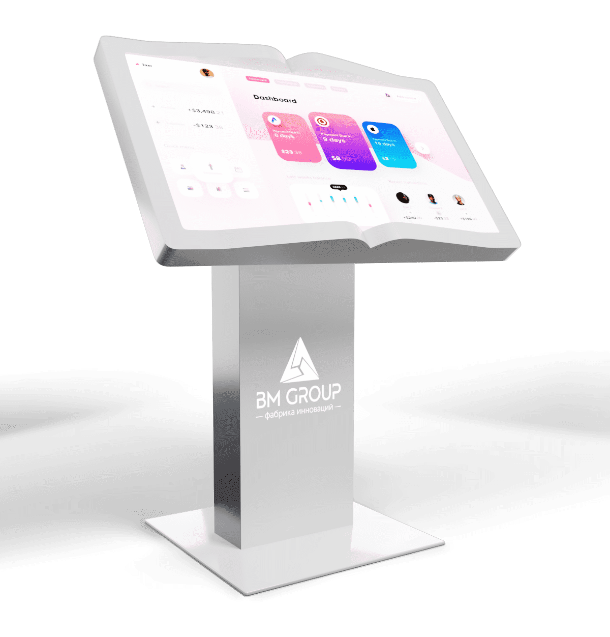 Классика в необычном прочтении - столешница сенсорного стола BM Book выполнена в виде раскрытой книги. Листайте страницы в защищенном браузере, который встроен в нашу оболочку Aura, читайте документы, просматривайте презентации с комфортом – благодаря особому, рассчитанному нашими инженерами углу наклона.