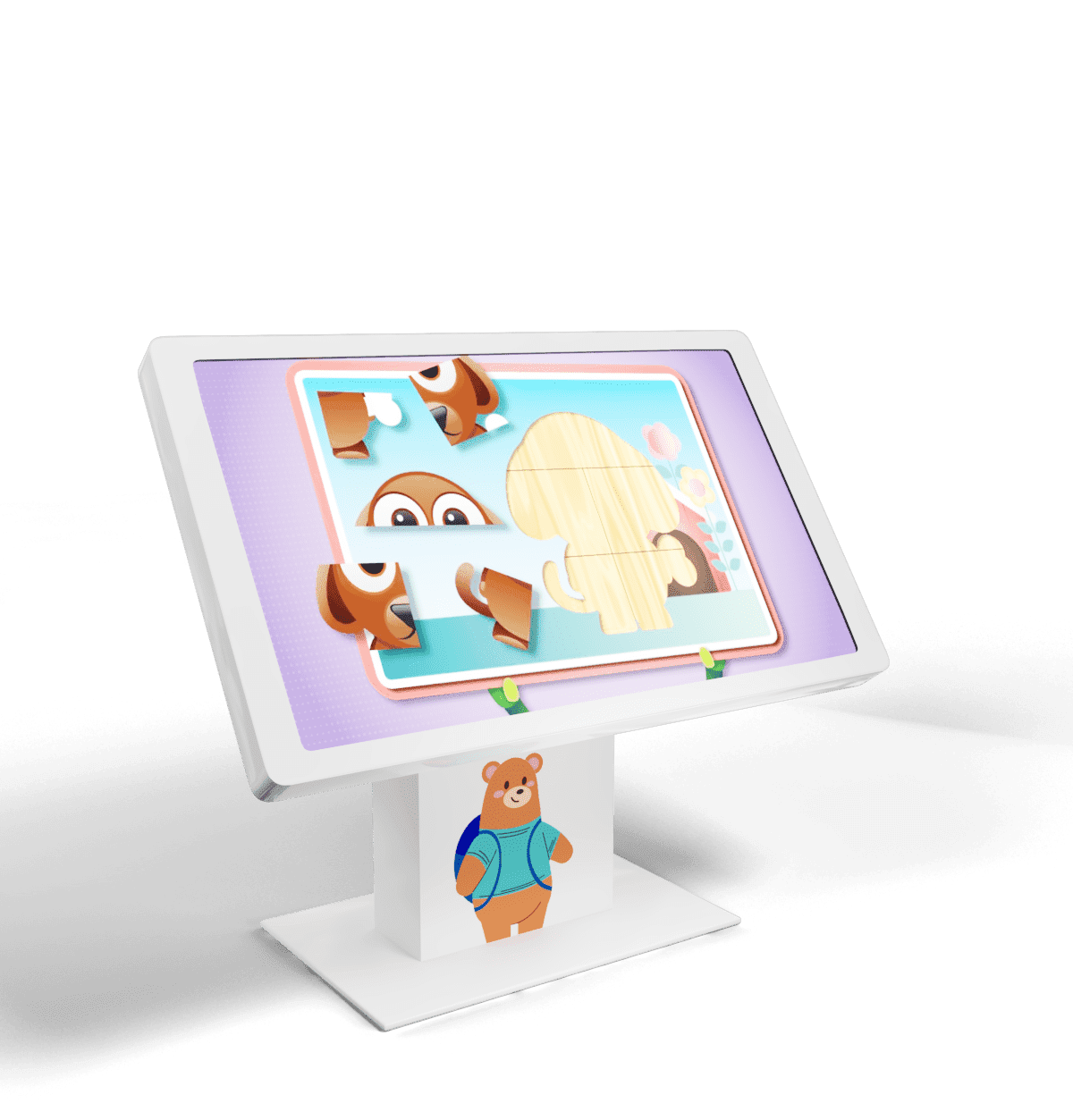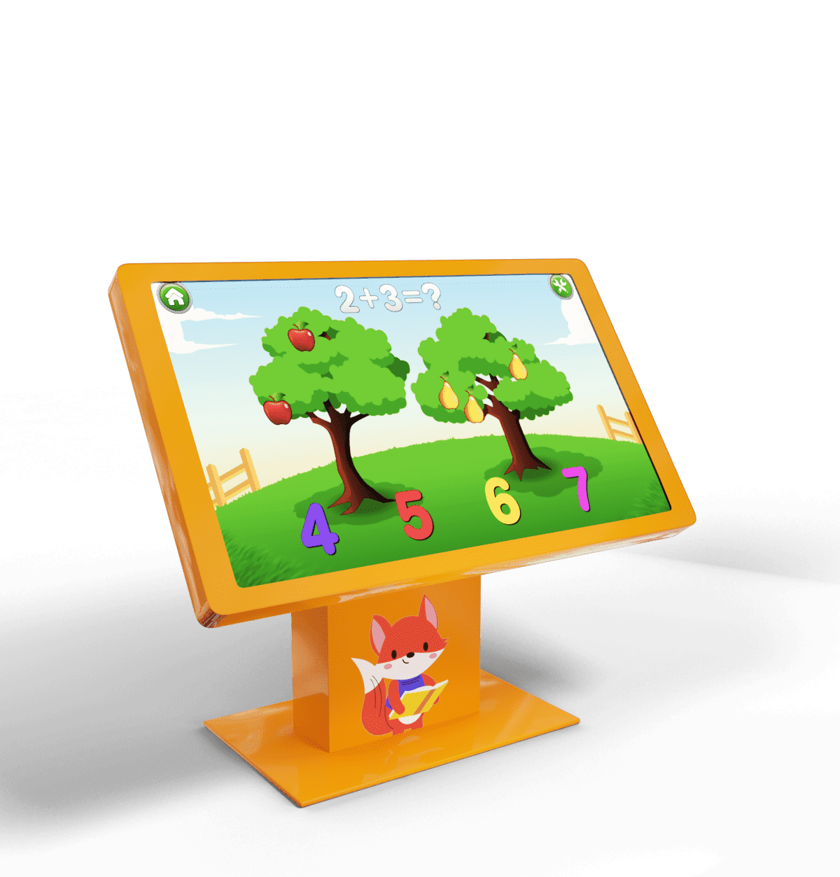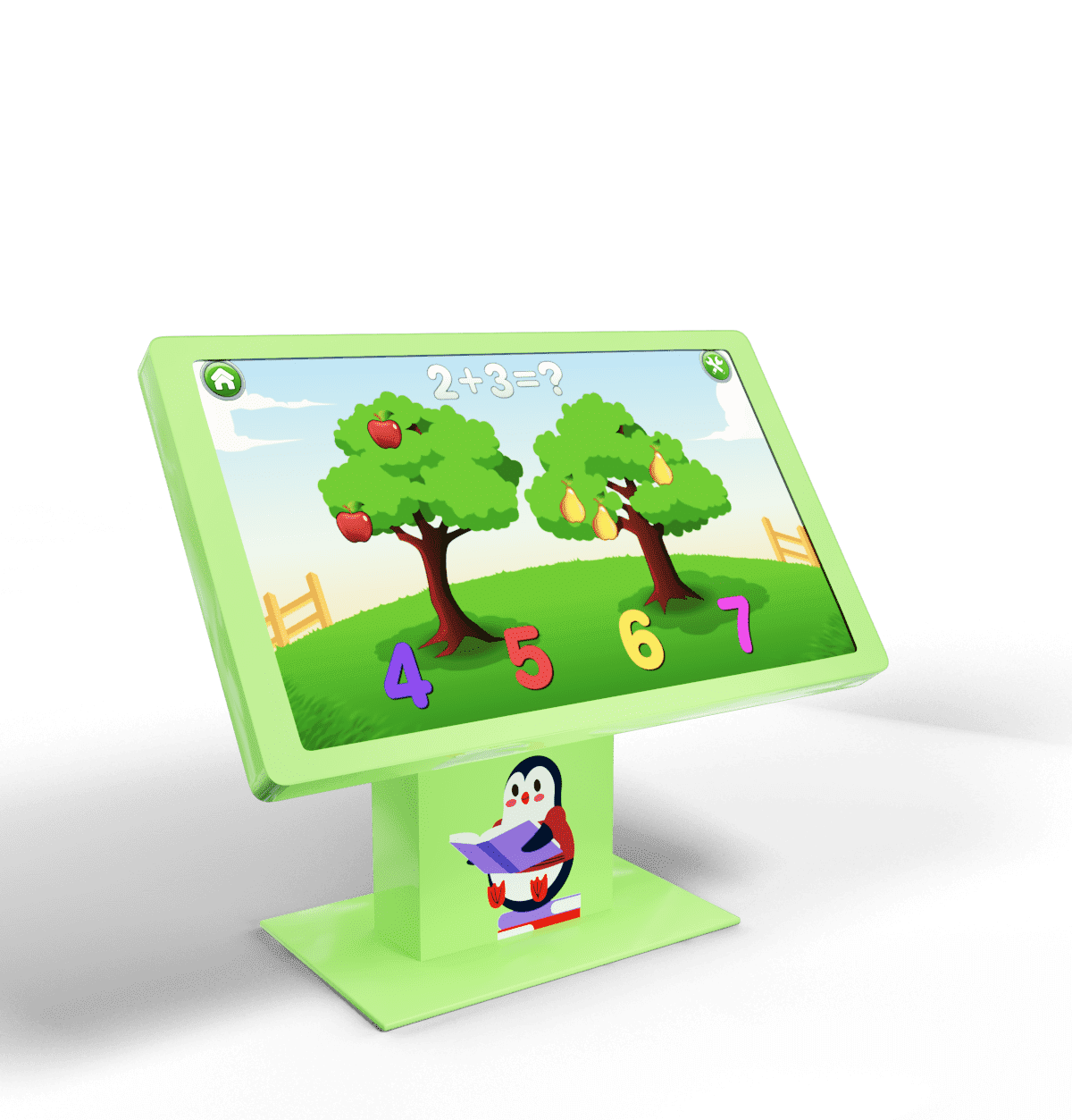 Интерактивный стол-трансформер с изменяемым углом наклона экрана оснащен интуитивно понятным интерфейсом и системой Мультитач. Ширина экрана позволяет играть и учиться за столом нескольким детям. Мы загрузили в него более 300 развивающих игр и обучающих заданий.
