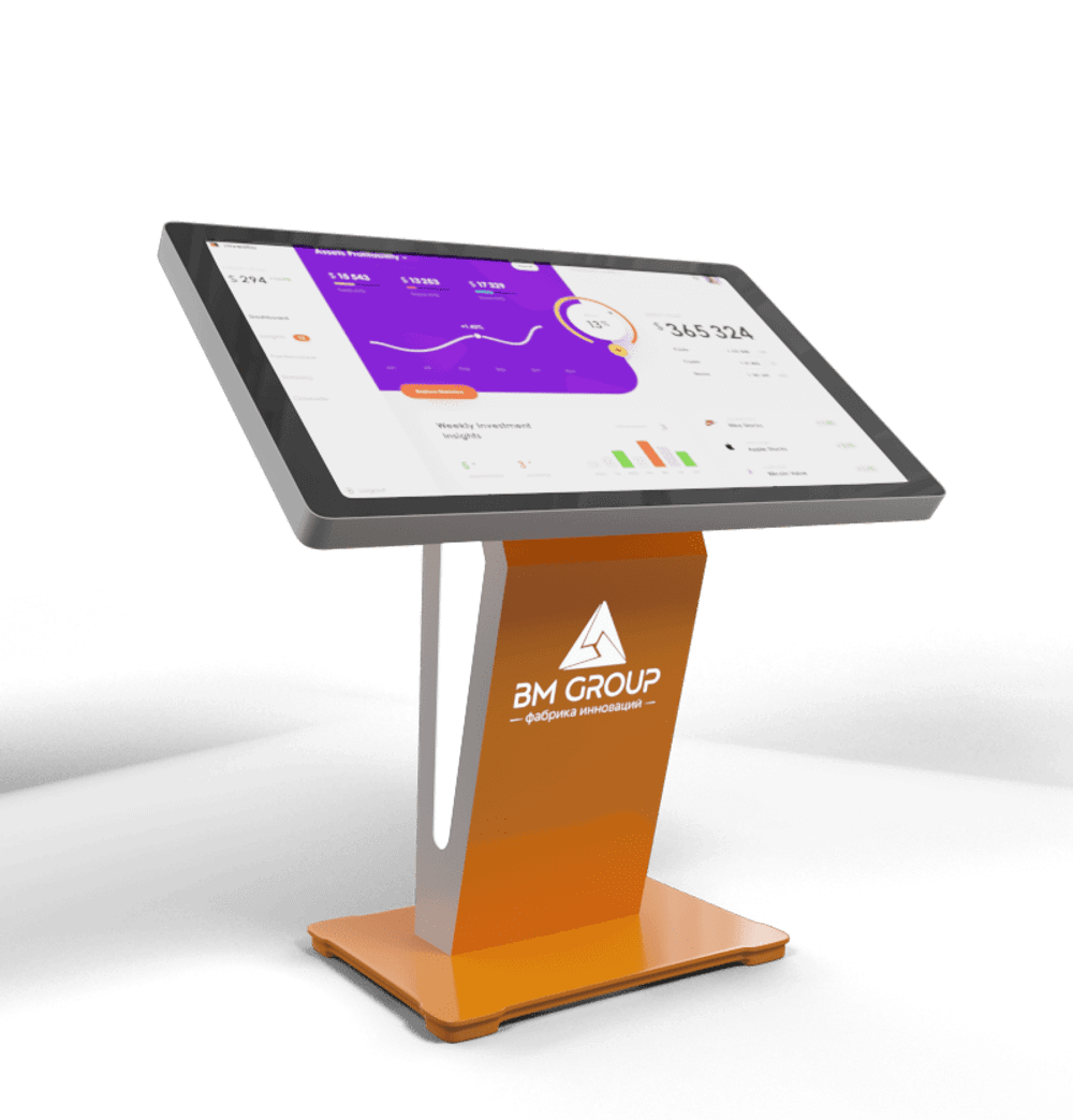 Сенсорный стол в ярком, стильном, современном дизайне создан для пространств с высокой проходимостью – бизнес-центров, медицинских центров, банков т.д. Программная оболочка BM Aura, отвечающая за многозадачность устройства, поддерживает работу с офисными приложениями оснащена защищенным браузером.