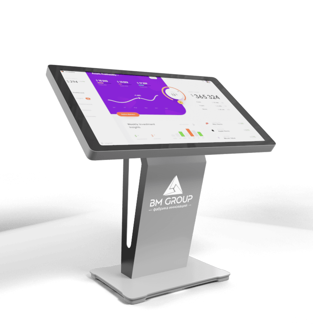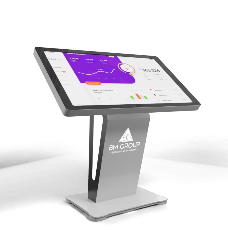 Сенсорный стол в ярком, стильном, современном дизайне создан для пространств с высокой проходимостью – бизнес-центров, медицинских центров, банков т.д. Программная оболочка BM Aura, отвечающая за многозадачность устройства, поддерживает работу с офисными приложениями оснащена защищенным браузером.