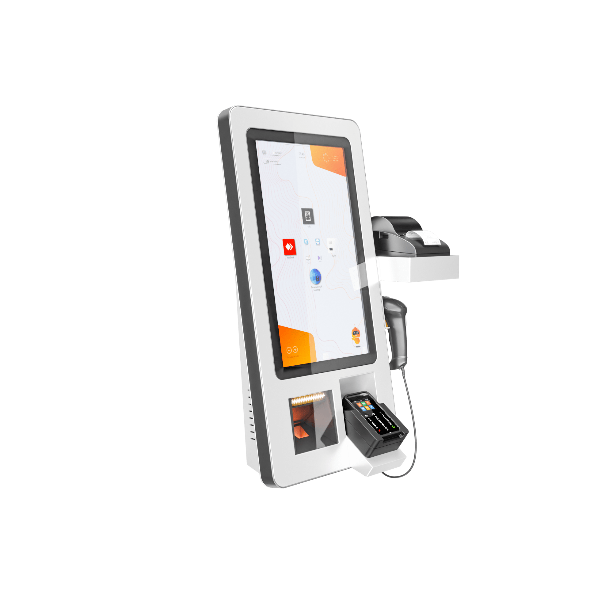 Новый терминал самообслуживания позволяет автоматизировать процесс покупок: принимает оплату контактным и бесконтактным способом, оснащен полочками для размещения корзины и товаров, крючками для пакетов. Терминал повышает качество обслуживания покупателей и ускоряет работу с товарами и оплатой.