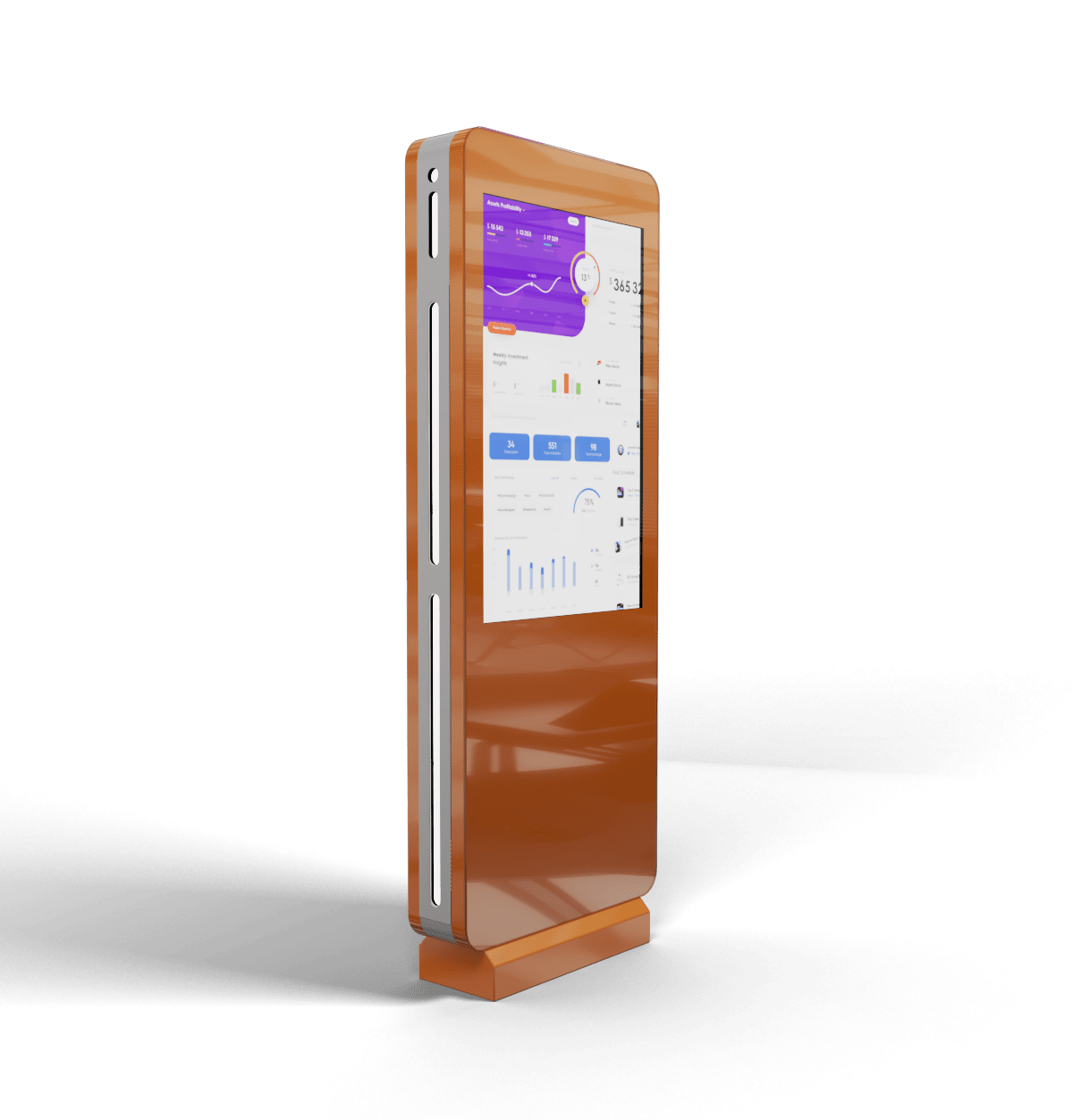 Мы разработали интерактивный уличный киоск Street Glass для помощи в навигации посетителям больших открытых пространств – парков, музеев под открытым небом, учреждений с несколькими корпусами и т.д. Стальной корпус и фасадное стекло защищают киоск от непогоды. Есть возможность брендирования корпуса и установки подсветки.