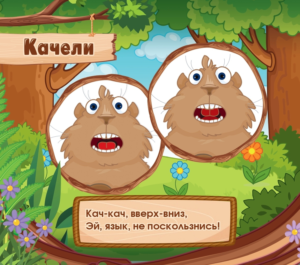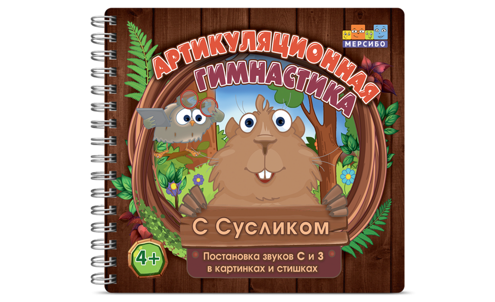 Упражнения предваряются историей Суслика: он разучился свистеть и теперь выполняет зарядку, которая поможет ему предупредить друзей об опасности звонким свистом. Ребенку проще и интереснее выполнять упражнения в компании симпатичного героя с опорой на картинку и стишок.
