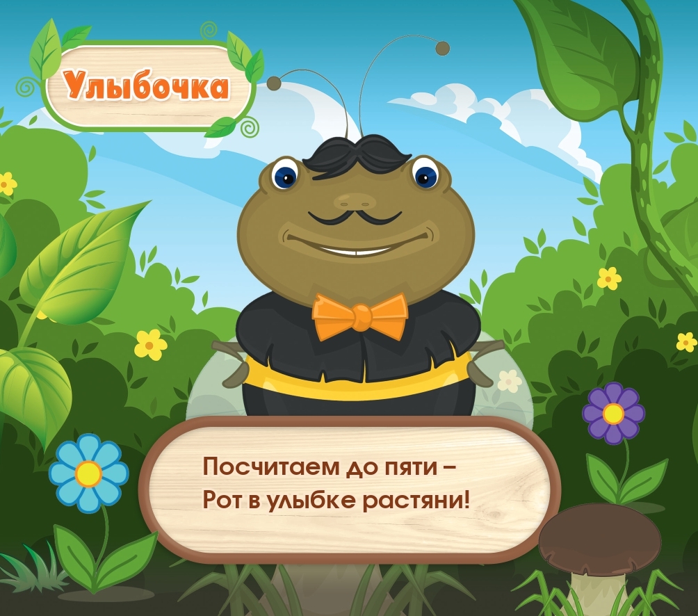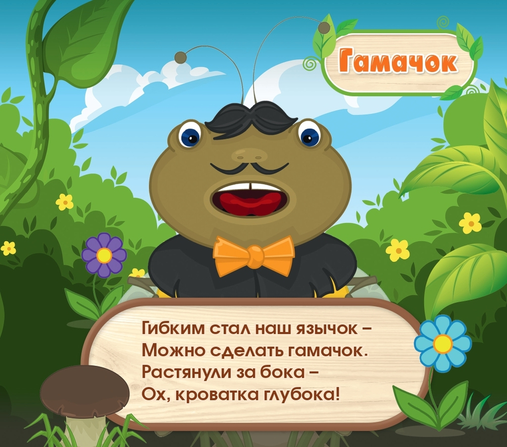 Упражнения предваряются историей Шмеля: он разучился жужжать и теперь выполняет зарядку, чтобы позвать любимых друзей задорным жужжанием. Ребенку проще и интереснее выполнять упражнения в компании симпатичного героя с опорой на картинку и стишок.