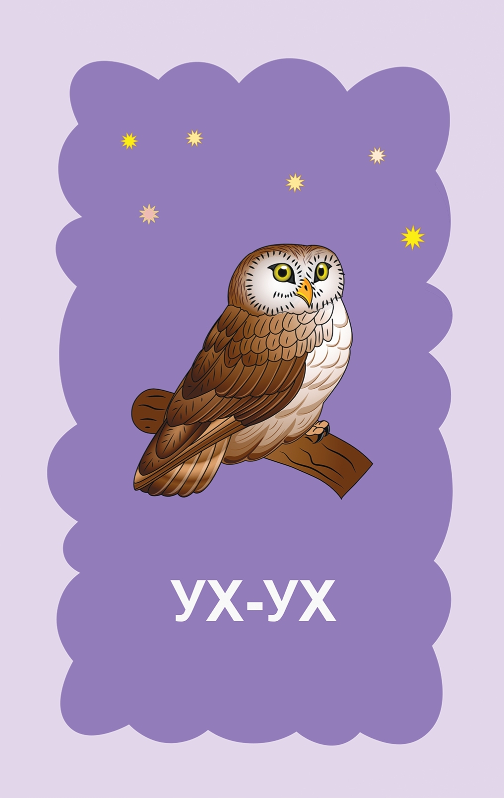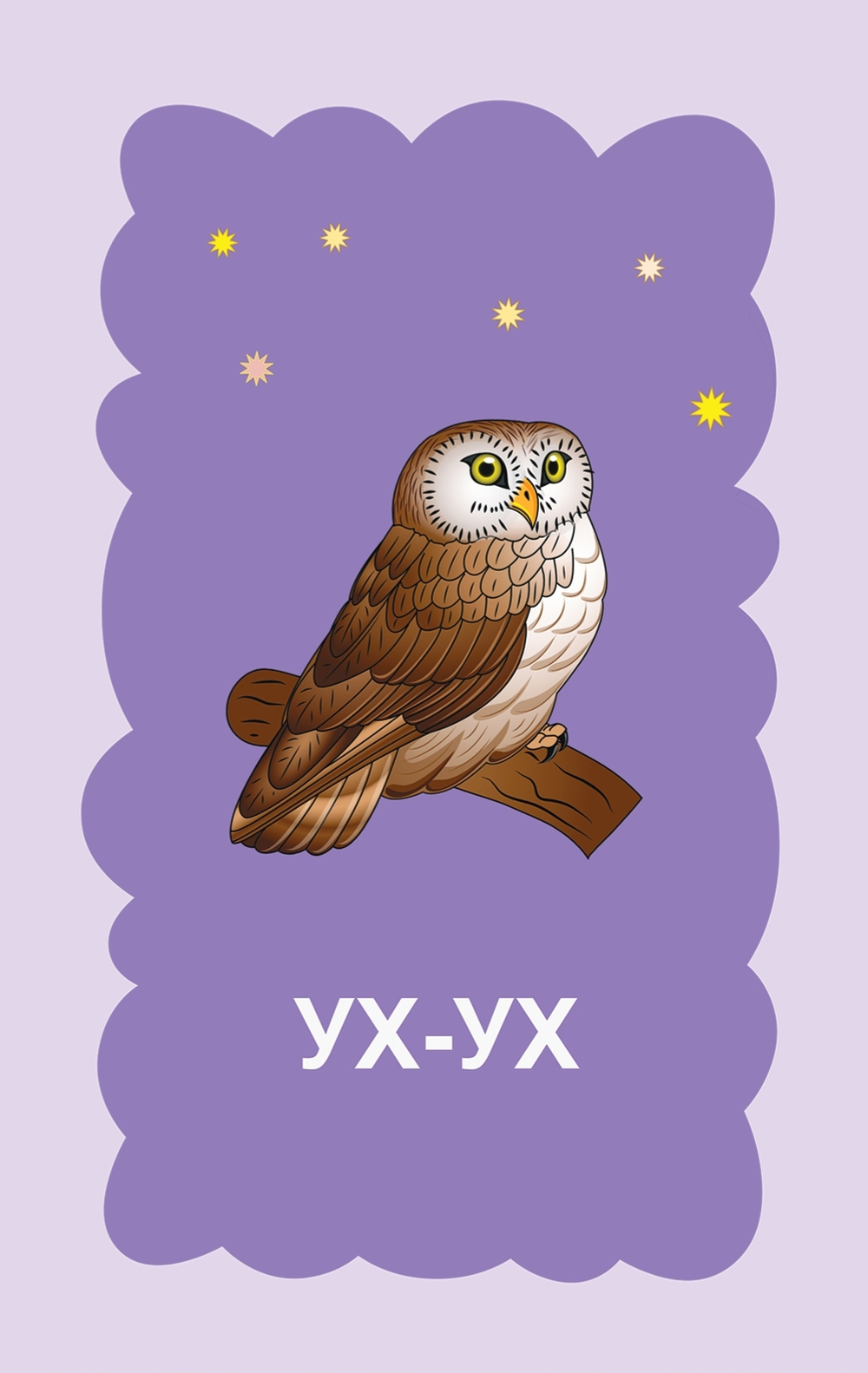 На карточке нарисована картинка животного или предмета и написаны слоги, которые издает это животное или предмет.