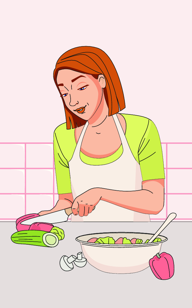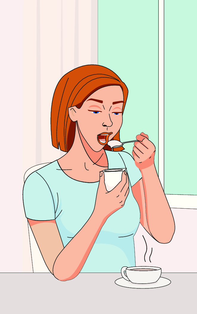 Например, мама есть йогурт на завтрак — это утро, учит уроки с ребенком после школы — это вторая половина дня, занимается стиркой — это выходной день.