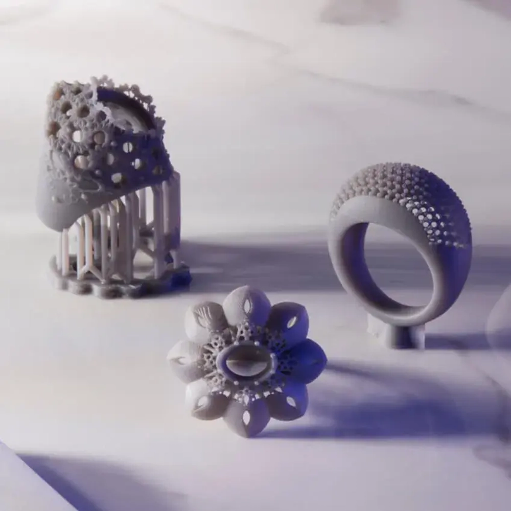 Полимер Formlabs Grey Resin с матовой поверхностью обеспечивает выдающуюся детализацию, делая его идеальным для быстрого и экономичного производства прототипов ювелирных изделий. Изделия обладают достаточной прочностью для обработки, носки и даже отправки заказчику, обеспечивая удобство в индивидуальной подгонке перед литьем, что делает их привлекательным выбором для подобных проектов.