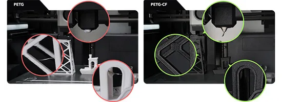 Добавление углеродного волокна значительно повышает XY-прочность PETG без ухудшения сцепления слоев.