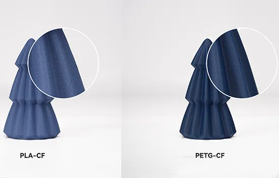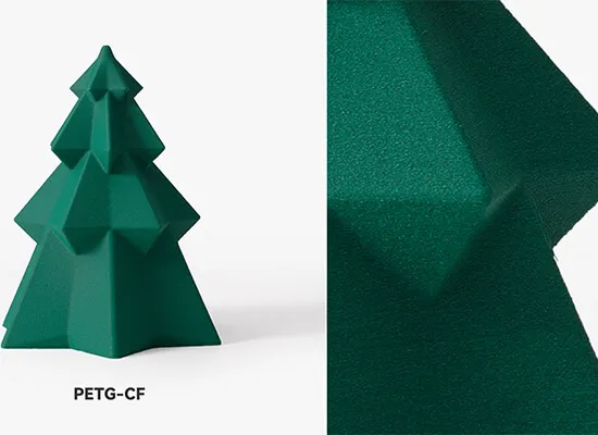 В отличие от матового PLA-CF, PETG-CF имеет более блестящую поверхность, чем увеличивает диапазон применения.