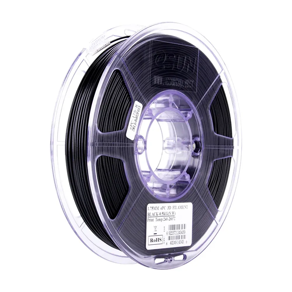 ESUN Polycarbonate (ePC) - ударопрочный, жёсткий термостойкий пластик. Пластичный, не токсичный, экологически чистый, обладает низкой воспламеняемостью.