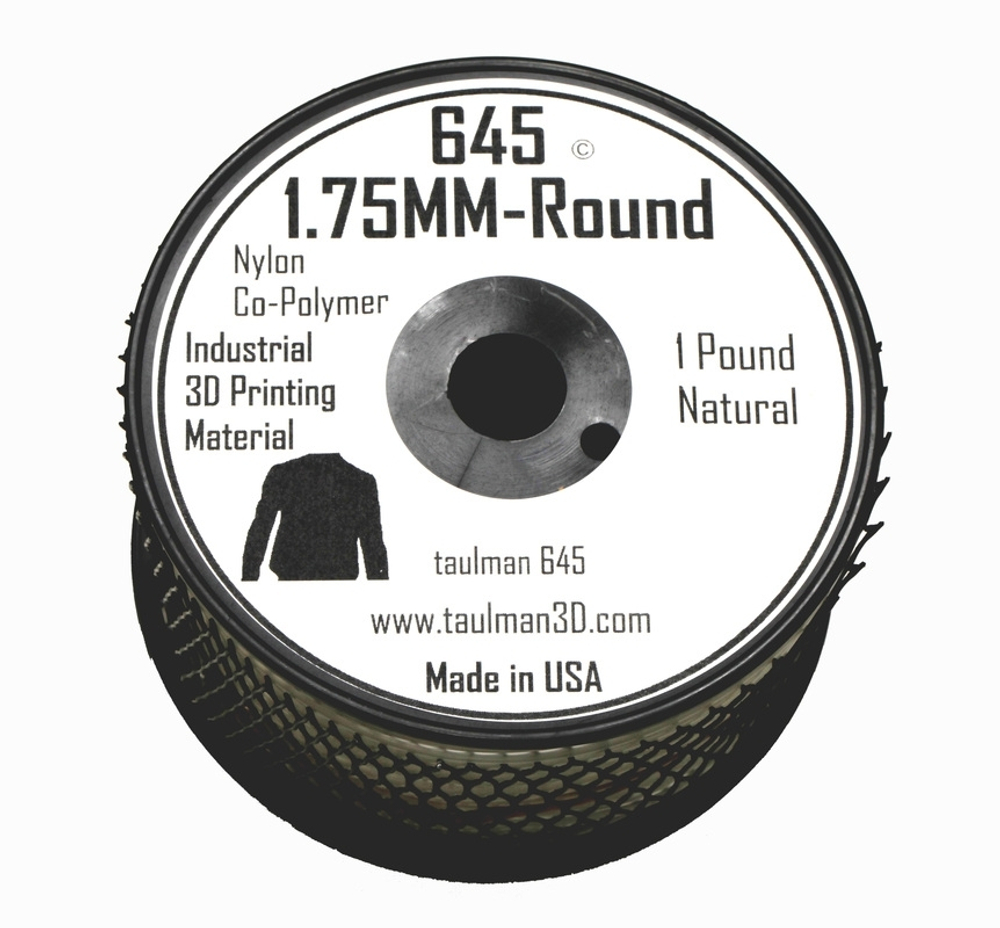 Новый материал от компании Taulman 3D, Taulman 645 Nylon обладает неповторимыми характеристиками. Ожидаемый предел прочности равен 16,533 фунта на квадратный дюйм (114 мПа), устойчивость на разрыв – 120%. Taulman 645 Nylon обладает всеми теми же качествами, что и Taulman 618 Nylon 3D, но с улучшенными характеристиками. Рекомендованная температура печати от ~230°C до 265°C.