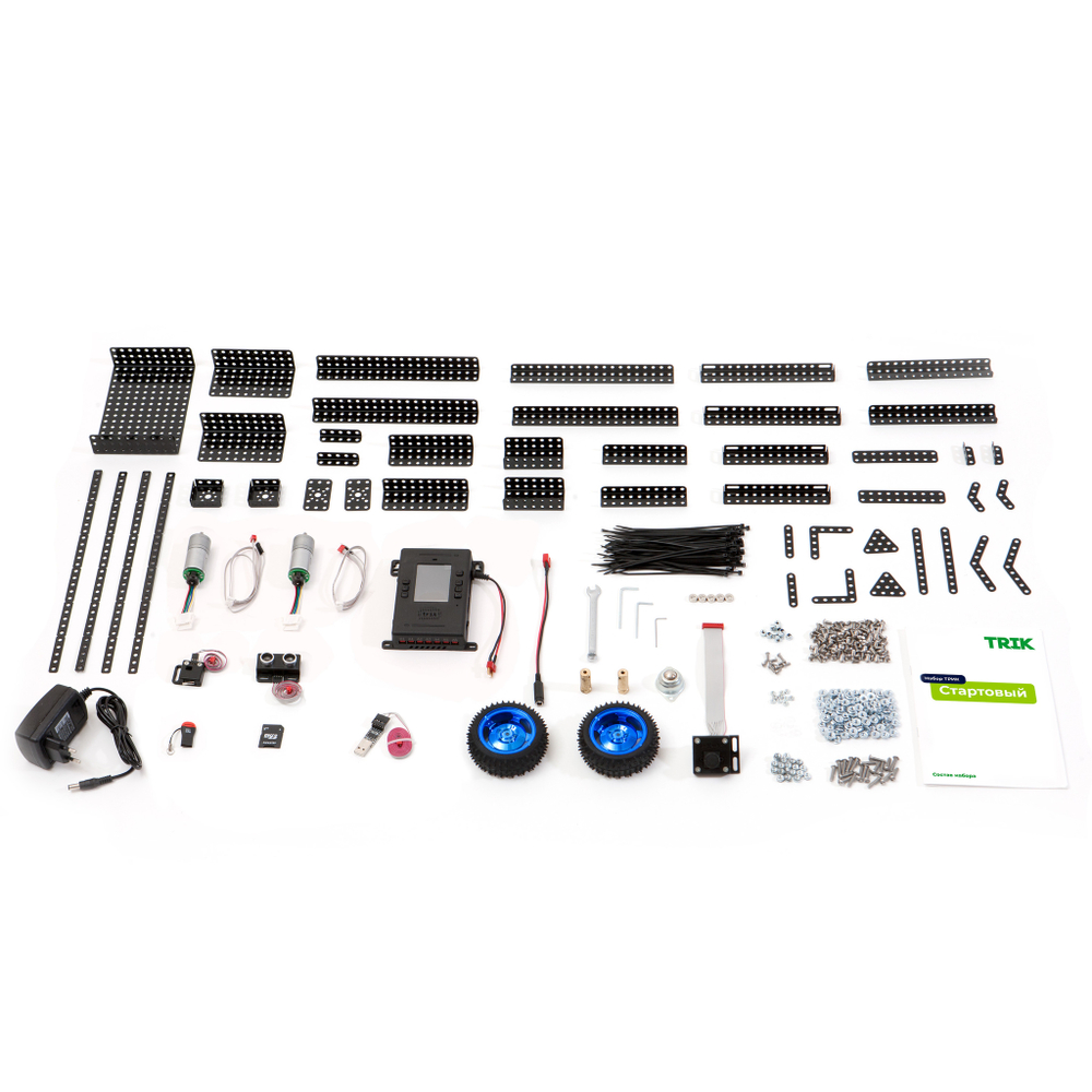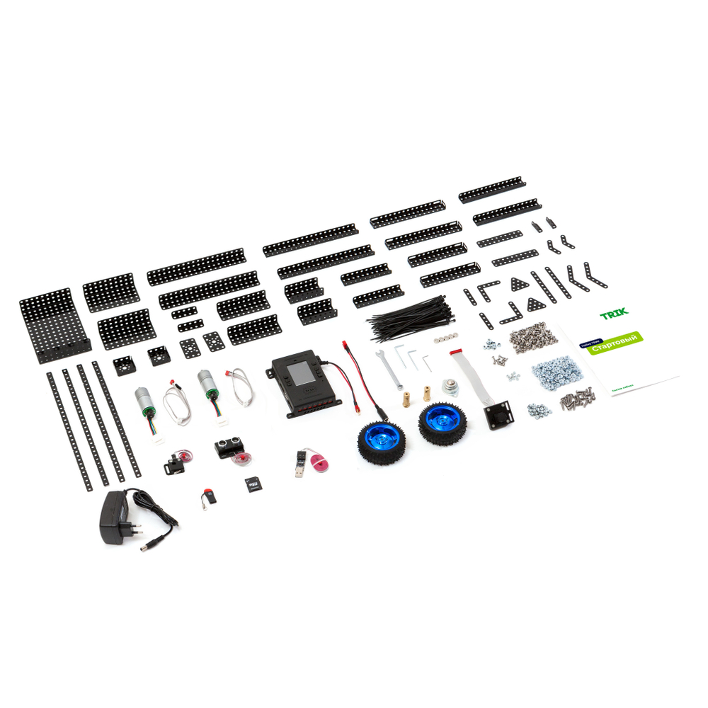 Набор со всем необходимым для сборки своего первого робота! Это может быть и радиоуправляемая игрушка, и учебное пособие для изучения основ кибернетики и программирования.