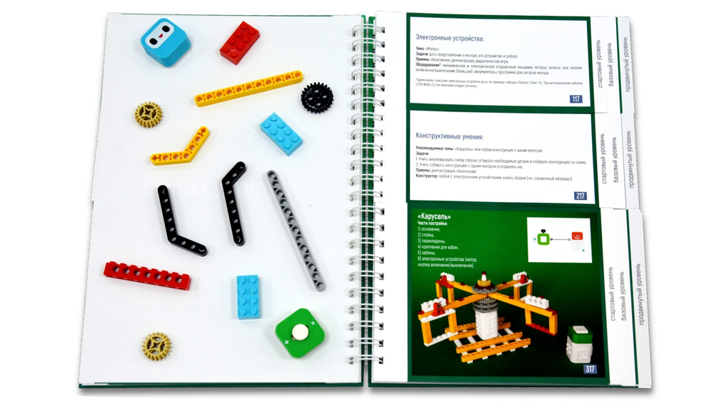 Занятия могут проводиться на любом конструкторе с шиповым типом соединений. Все модели представлены в исполнении двух видов конструкторов: Tinkamo Tinker Kit и LEGO WeDo 2.0.