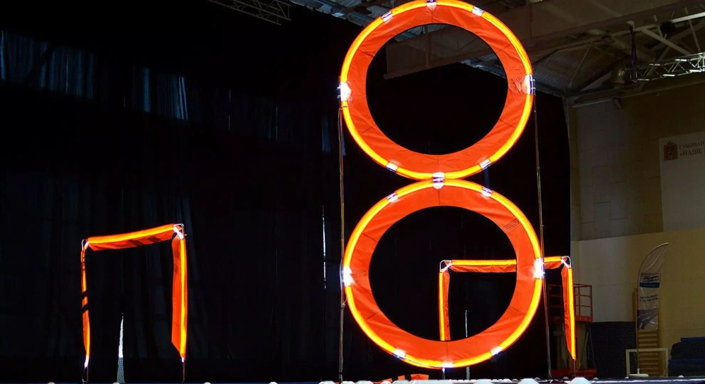 Подвесные кольца для реализации программ тренировок по обучению полетам, подготовке к соревнованиям и проведению соревнований по дрон-рейсингу.