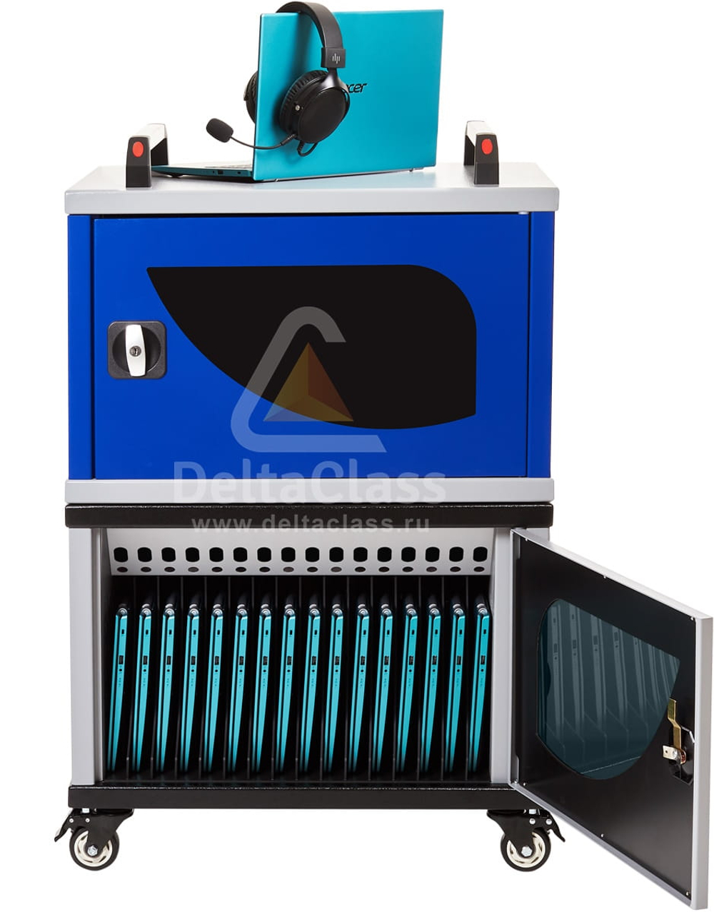 Мобильные системы DELTACLASS позволяют удобно, безопасно и компактно размещать, обслуживать, хранить и ориентировать в пространстве программно-аппаратный образовательный комплекс. При этом постоянно сохраняется его полная работоспособность и возможность в любой момент воспользоваться в произвольном месте, не предпринимая дополнительных действий и не обладая специальными компетенциями – ноутбуки будут всегда полностью заряжены и не перегреются, а беспроводная сеть обеспечит стабильное быстрое локальное и глобальное взаимодействие.
