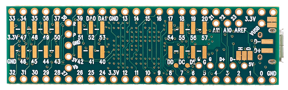 На плате расположены 58 контактов ввода-вывода с толератностью к 5 В и другими особенностями:
