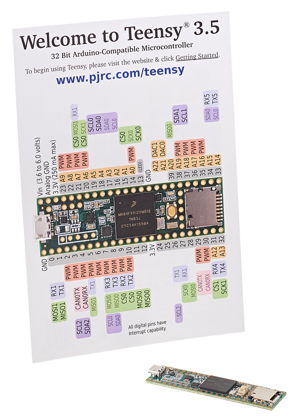 Teensy 3.5 входит в семейство компактных платформ для разработки, которые поддерживают Arduino IDE. Плата построена на высокопроизводительном ARM-процессоре с ядром Cortex-M4 в сумме с широким набором интерфейсов и встроенным слотом для SD-карты. Ресурсов Teensy 3.5 достаточно для обработки звука, проигрывания аудио и видеофайлов, управления многосуставными роботами, распознавания образов и анализа большого объёма данных.