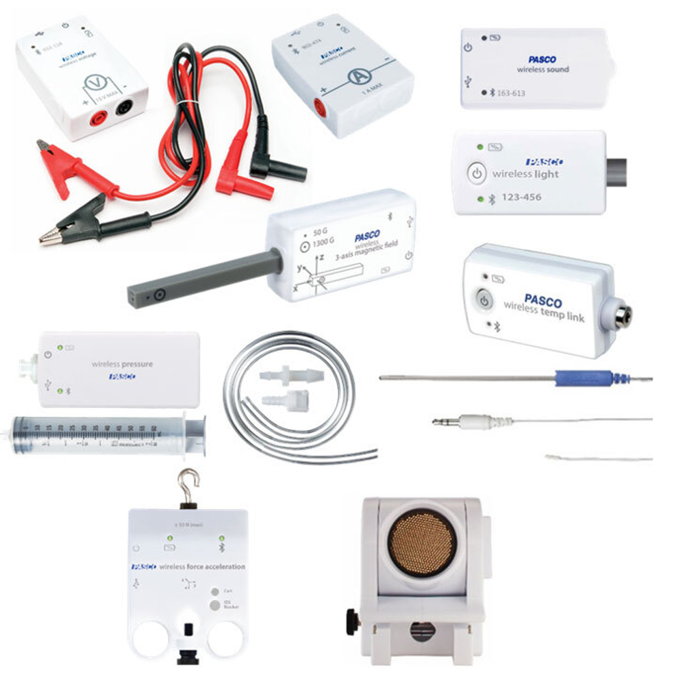 Комплект датчиков PASCO по физике «Базовый беспроводной» позволяет организовать учебно-лабораторный и проектно-исследовательский практикум в средней и старшей школе.